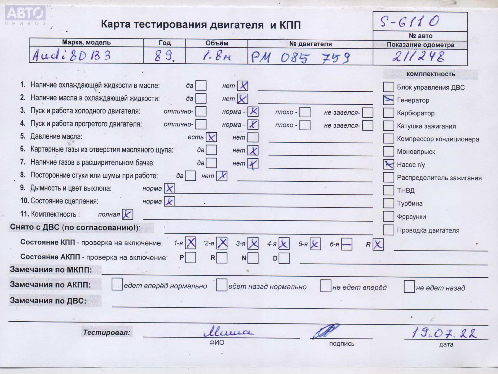 | Марка / Модель / Год: | Audi 80 B3 (1987-1992) 1989 |