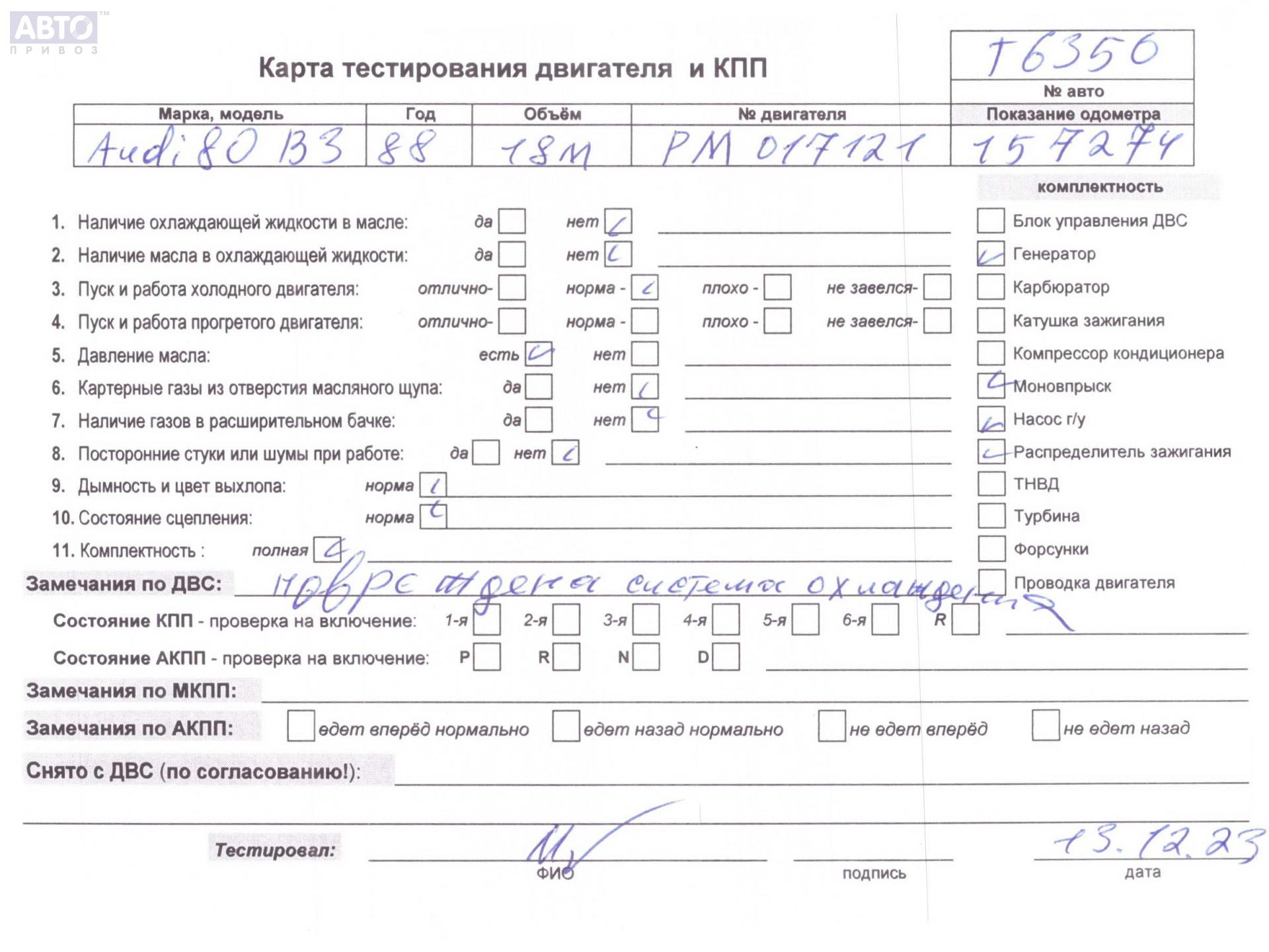 | Марка / Модель / Год: | Audi 80 B3 (1987-1992) 1988 |