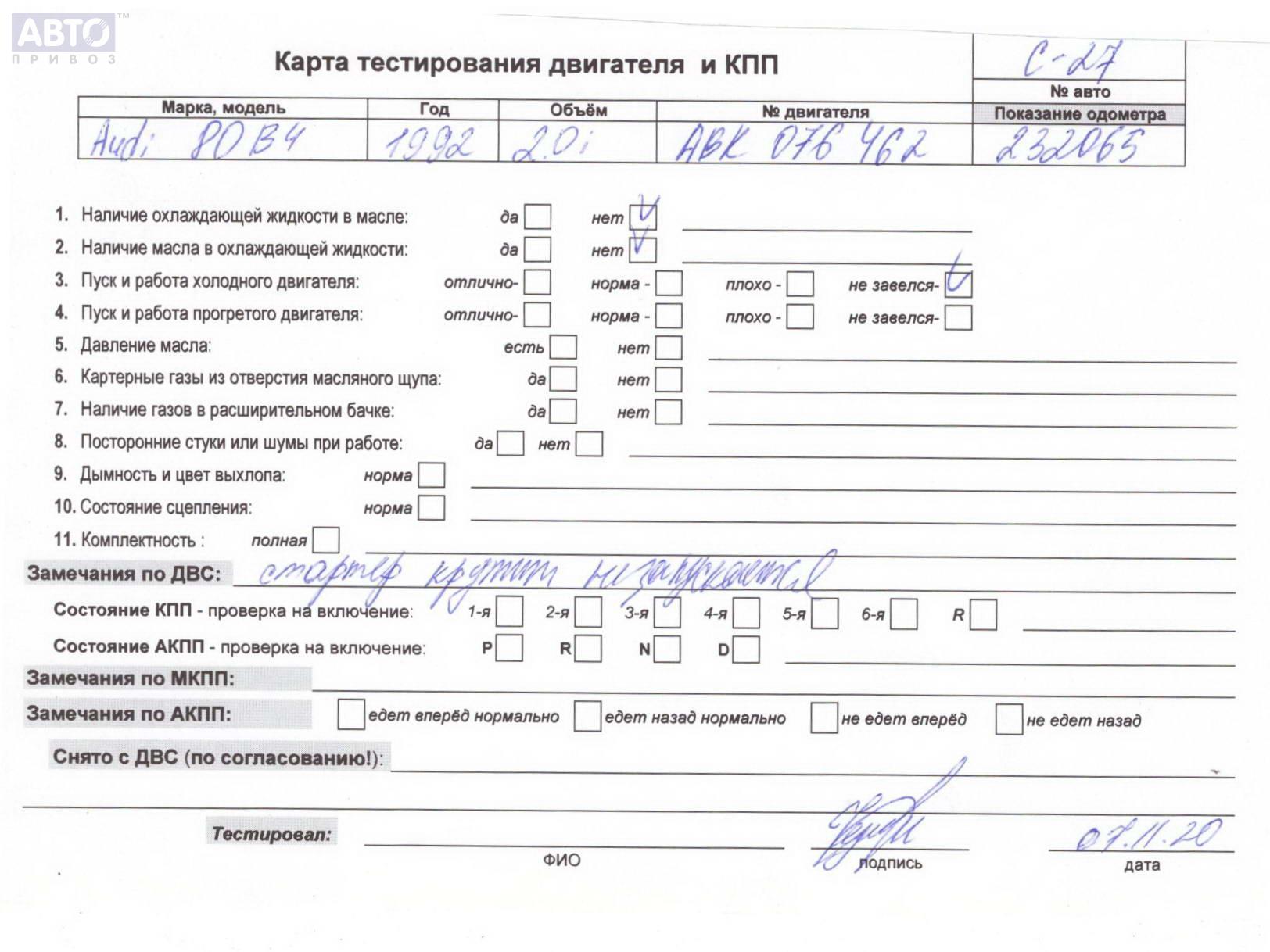 | Марка / Модель / Год: | Audi 80 B4 (1991-1996) 1992 |