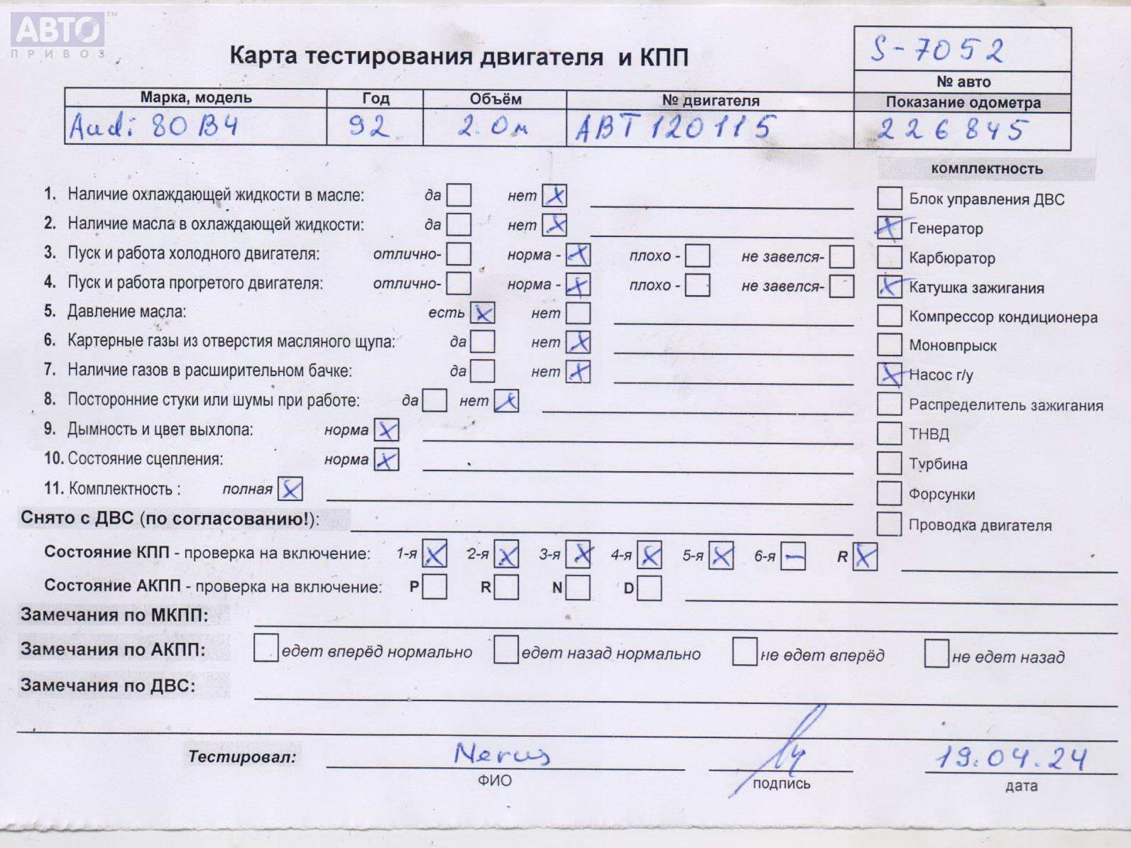 | Марка / Модель / Год: | Audi 80 B4 (1991-1996) 1992 |