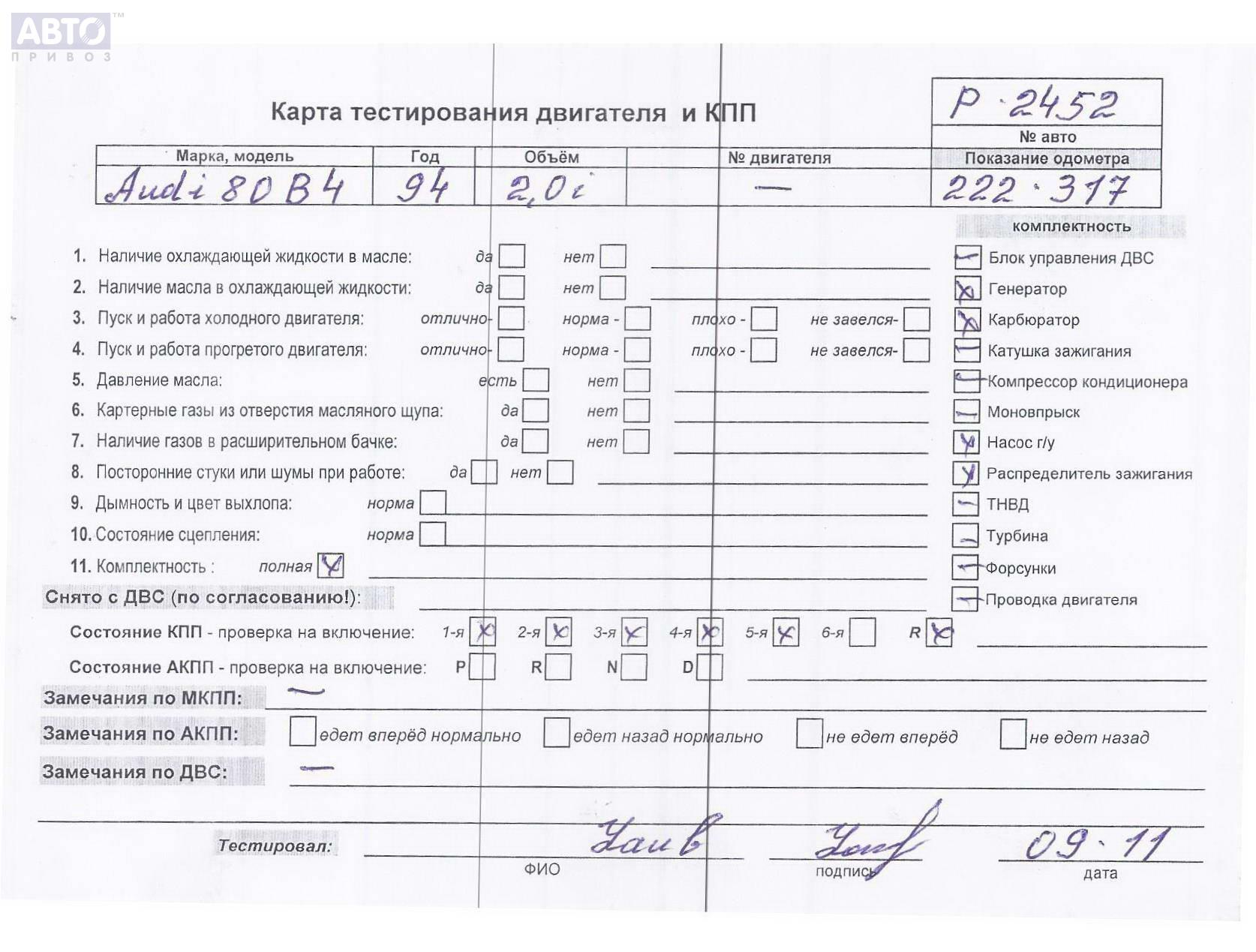 | Марка / Модель / Год: | Audi 80 B4 (1991-1996) 1994 |