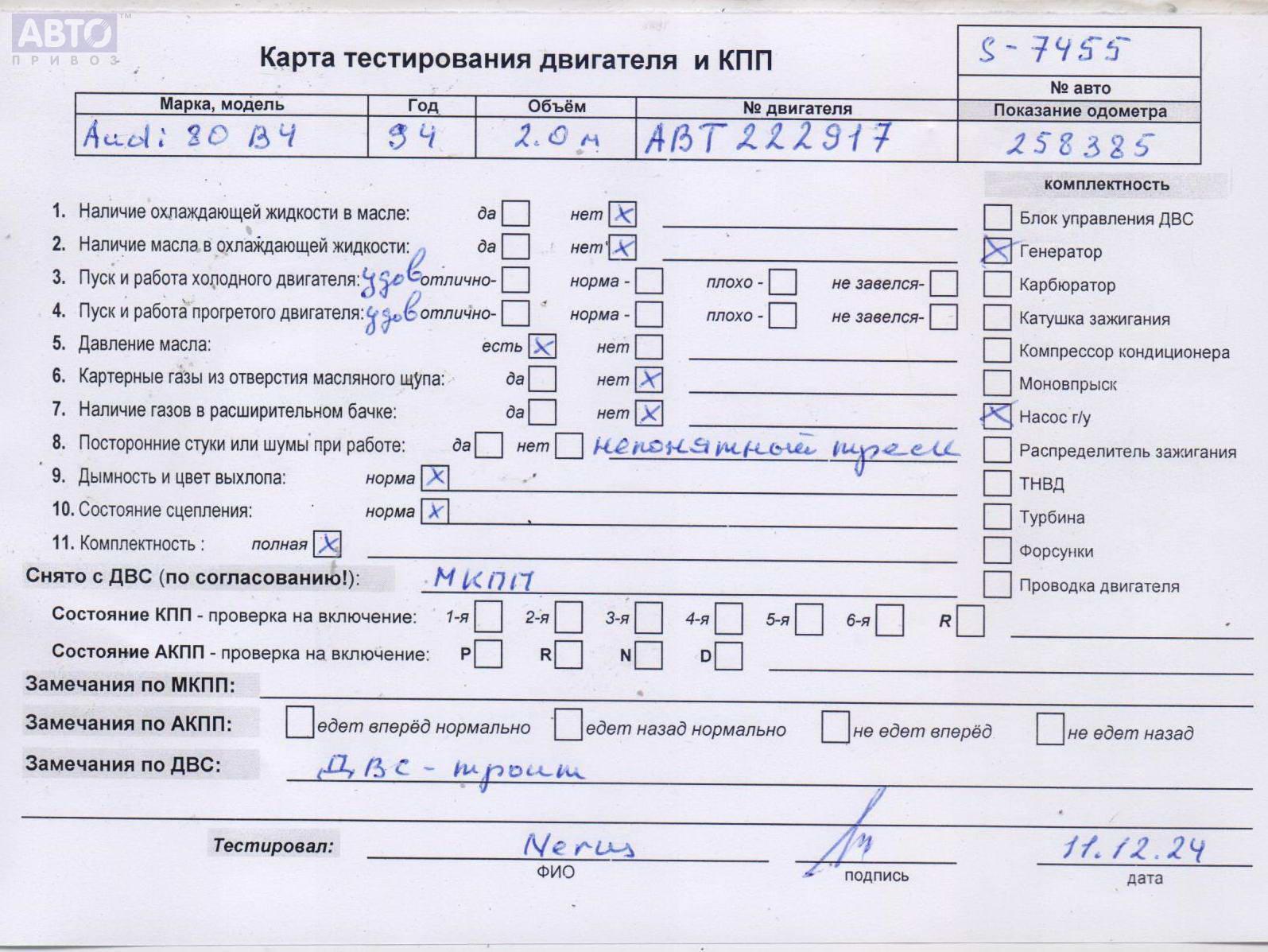 | Автомобиль / VIN: | S7455 WAUZZZ8CZRA183312 |
