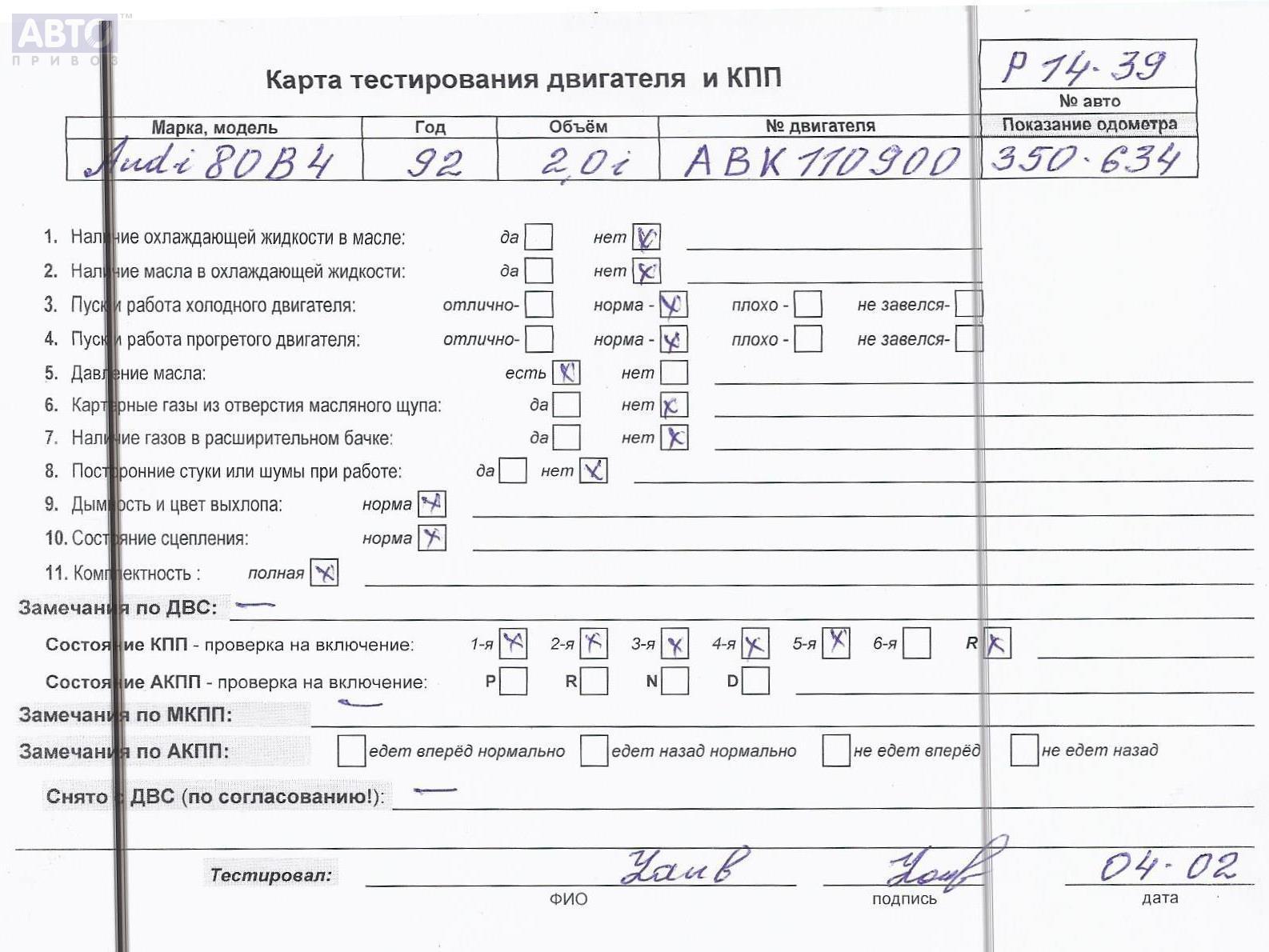 | Марка / Модель / Год: | Audi 80 B4 (1991-1996) 1992 |