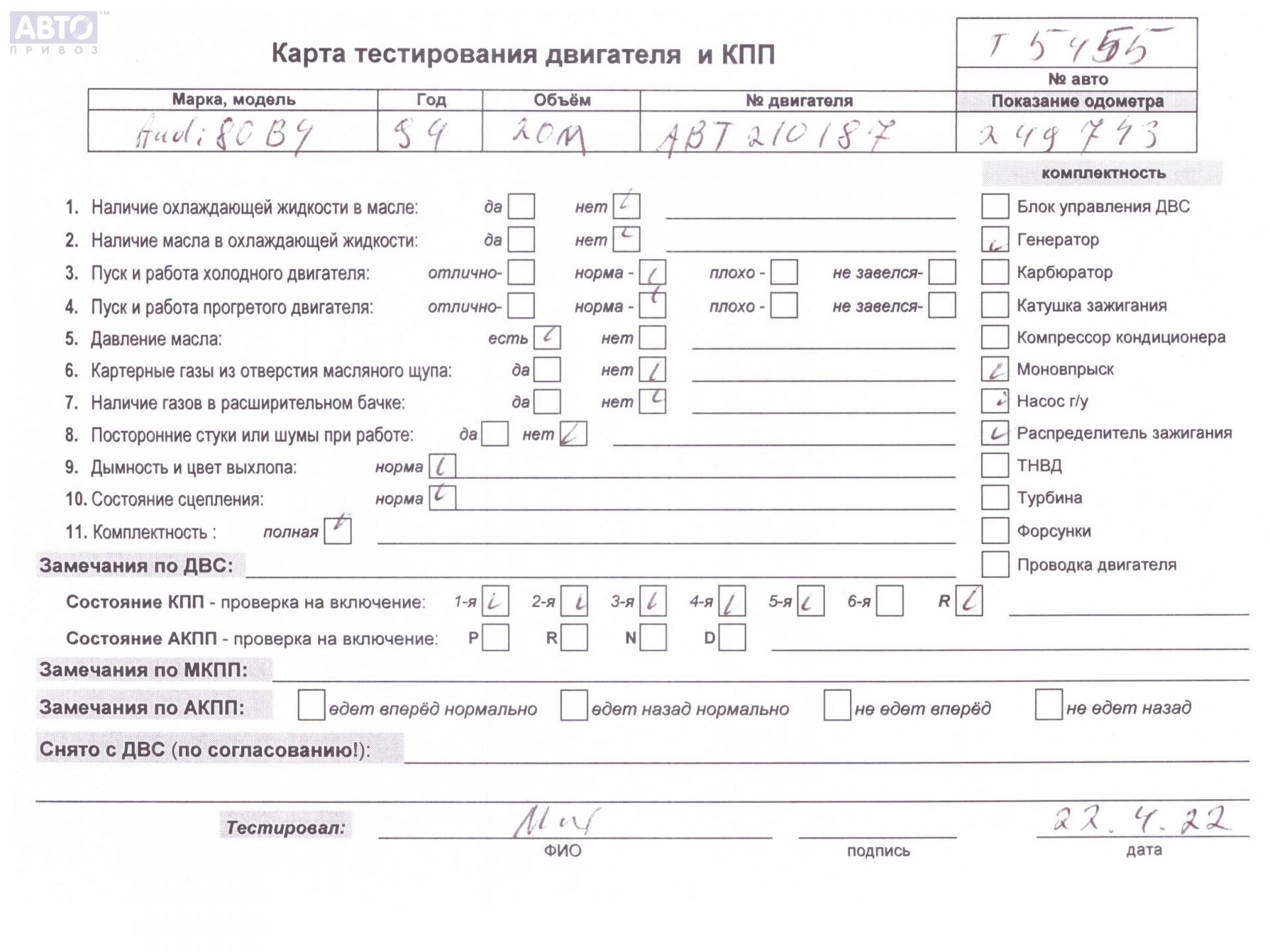 | Автомобиль / VIN: | T5455 WAUZZZ8CZRA114909 |