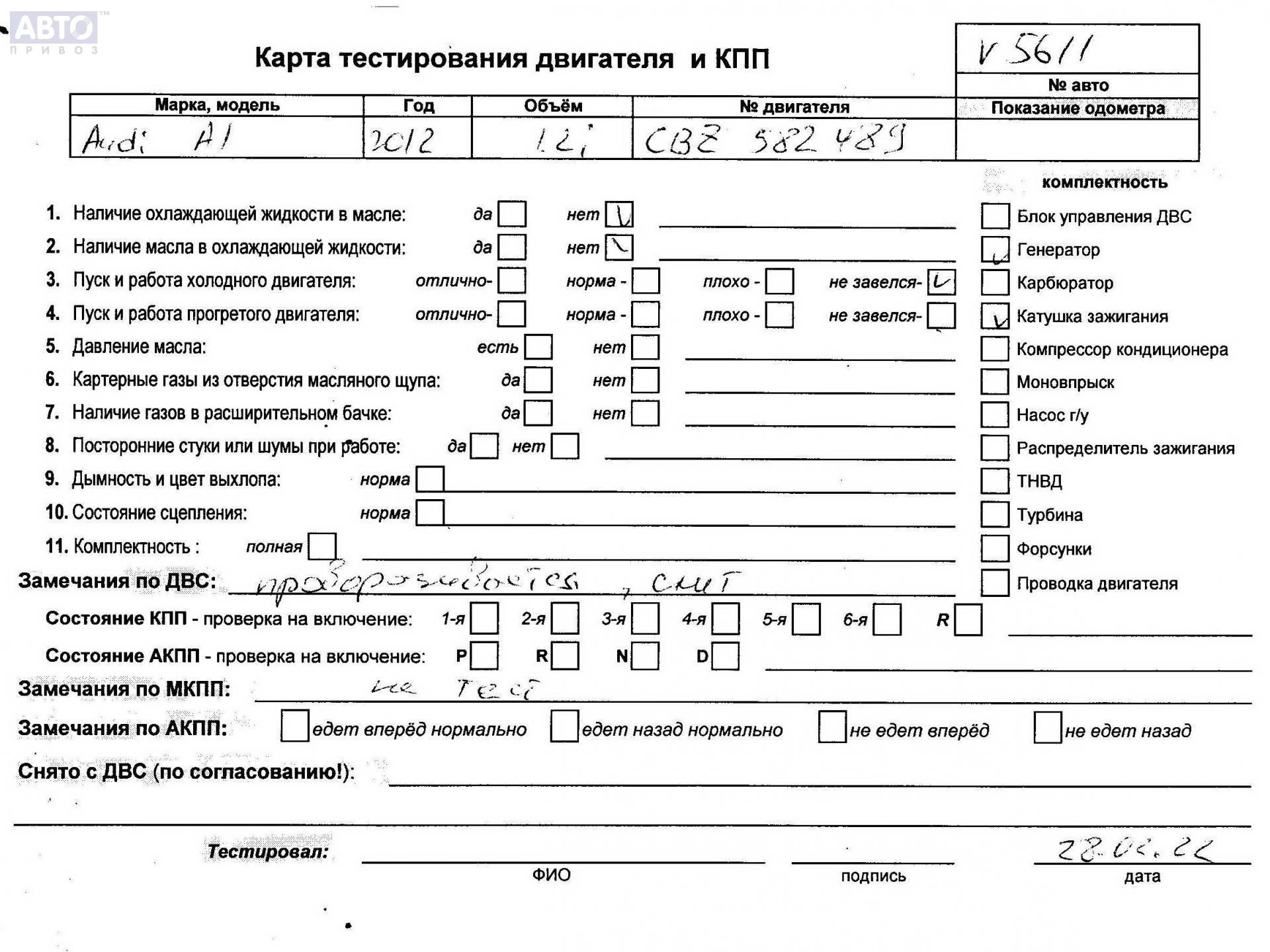 | Автомобиль / VIN: | V5611 WAUZZZ8X0CB060952 |