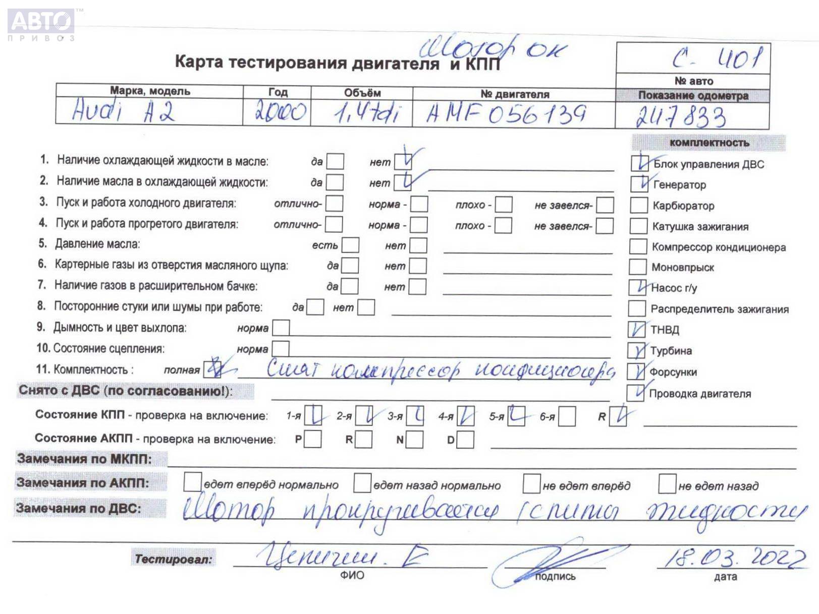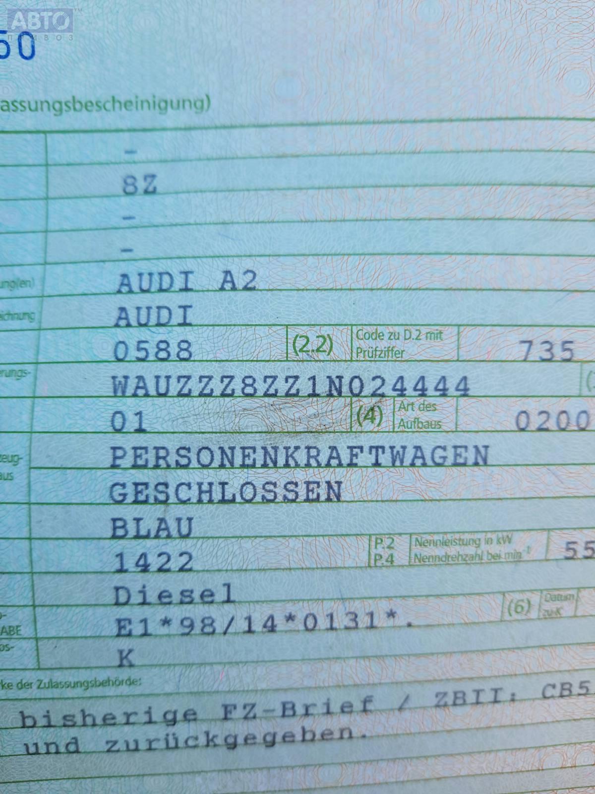 | Марка / Модель / Год: | Audi A2 8Z (1999-2005) 2000 |