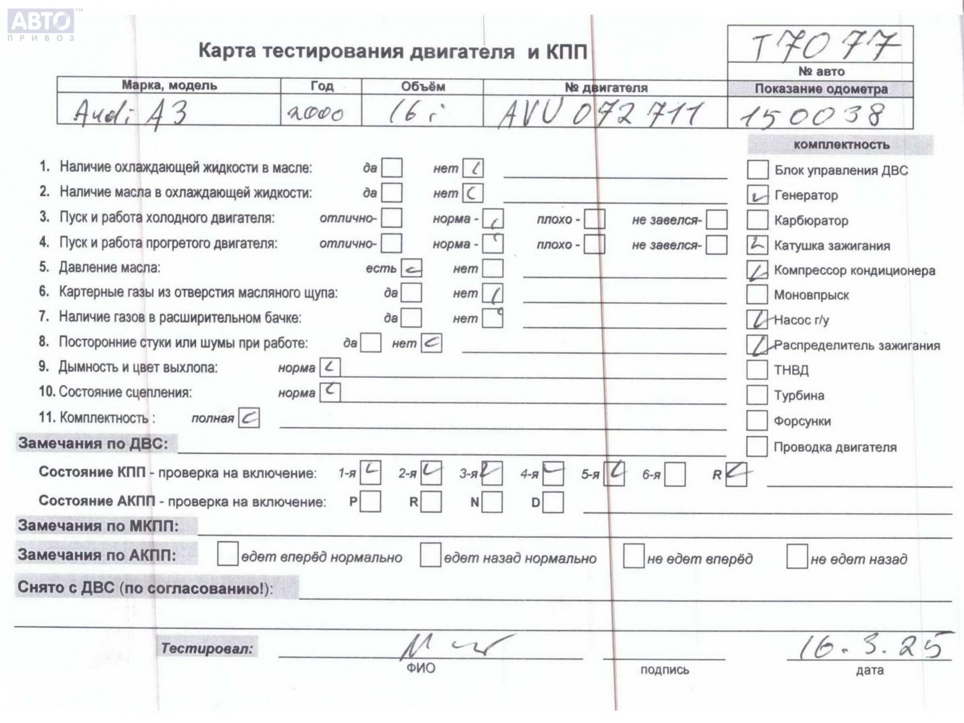 | Автомобиль / VIN: | T7077 WAUZZZ8L62A003365 |