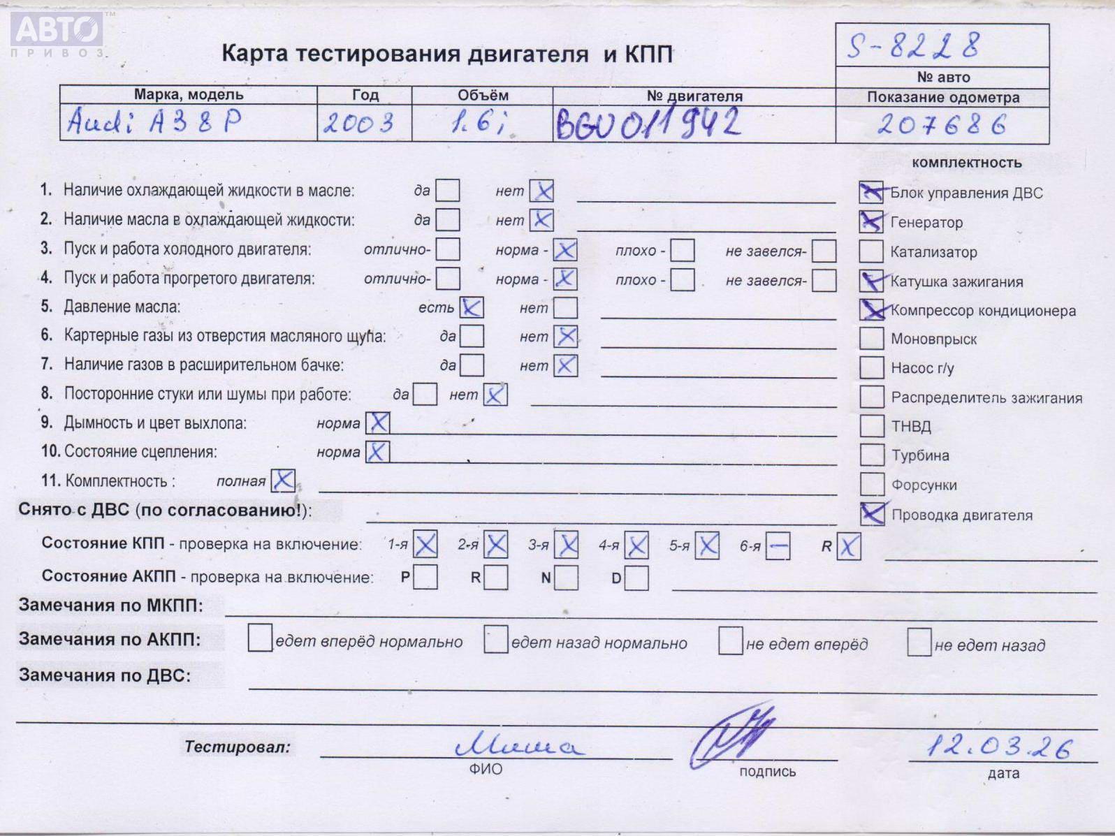 | Марка / Модель / Год: | Audi A3 8P (2003-2012) 2003 |