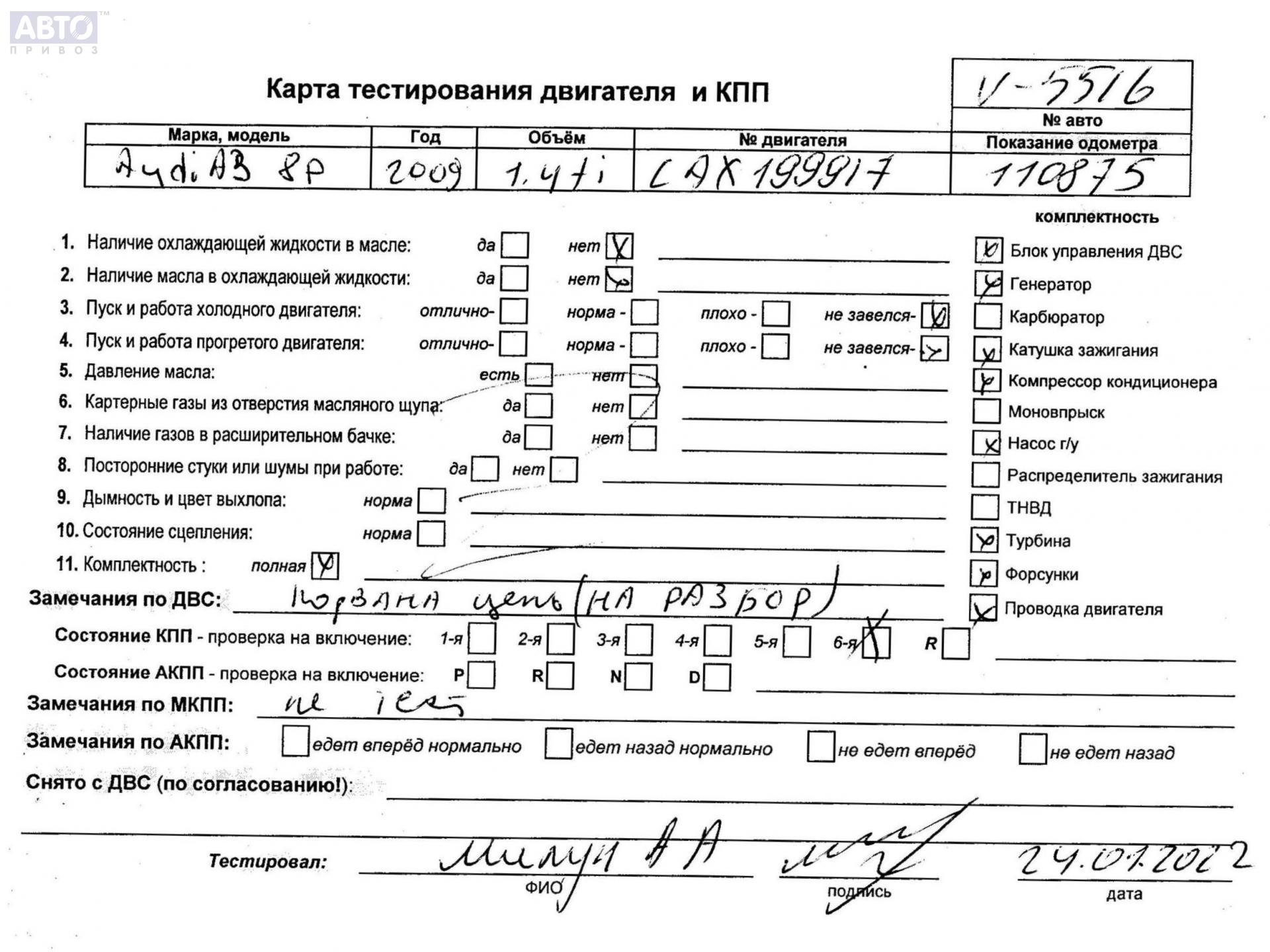 | Марка / Модель / Год: | Audi A3 8P (2003-2012) 2009 |