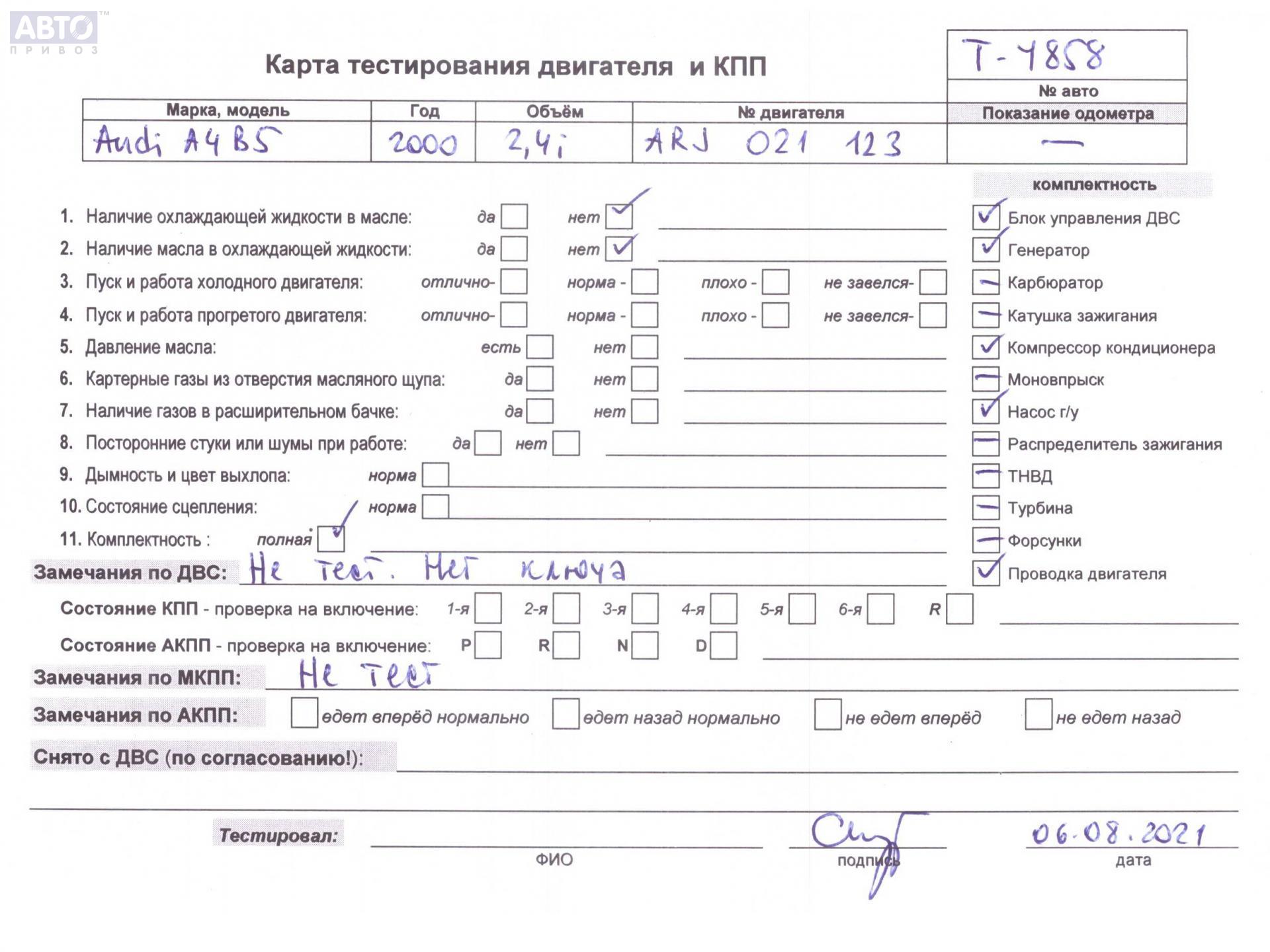 | Автомобиль / VIN: | T4858 WAUZZZ8DZYA110126 |