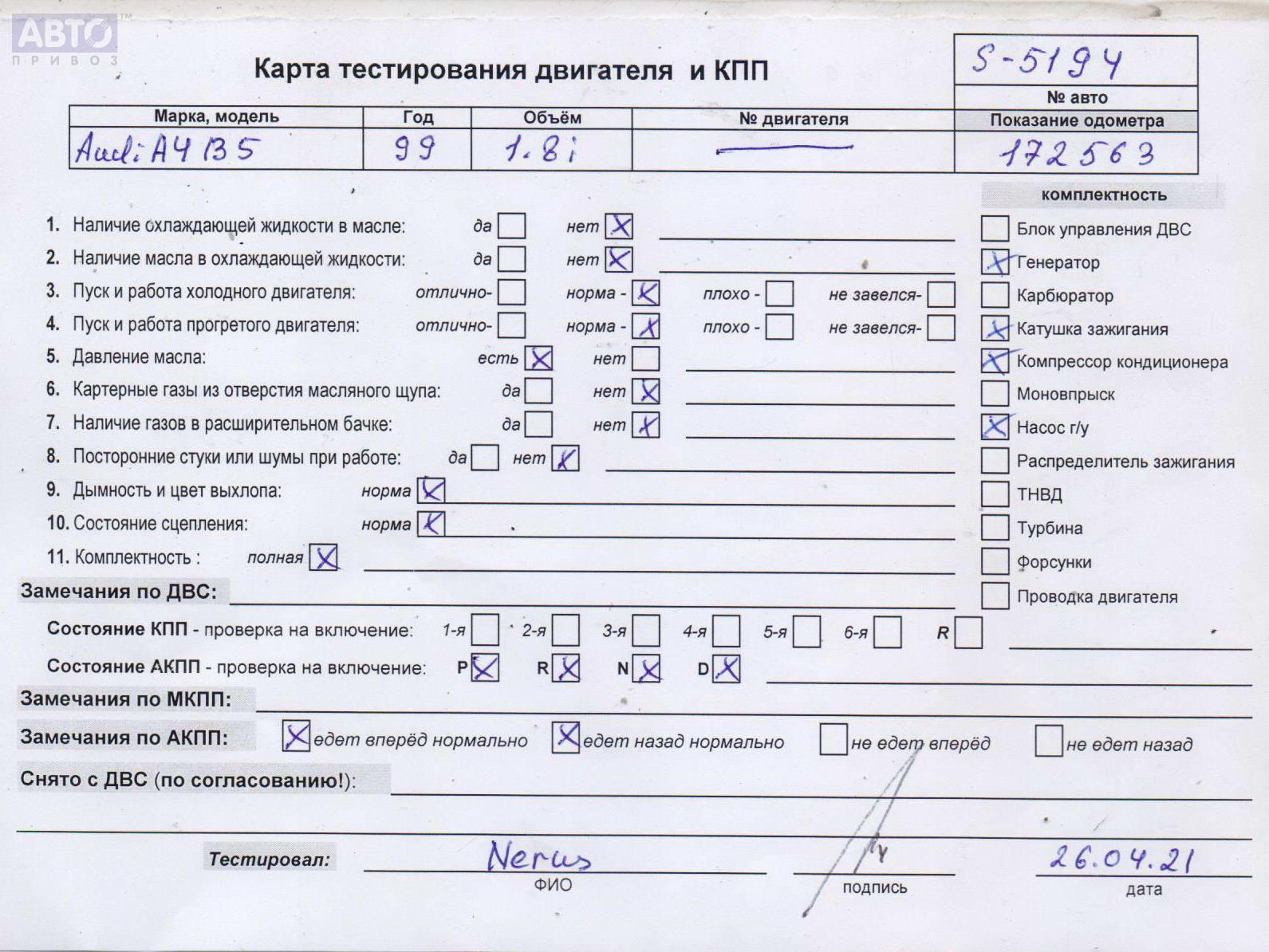 | Марка / Модель / Год: | Audi A4 B5 (1994-2001) 1999 |