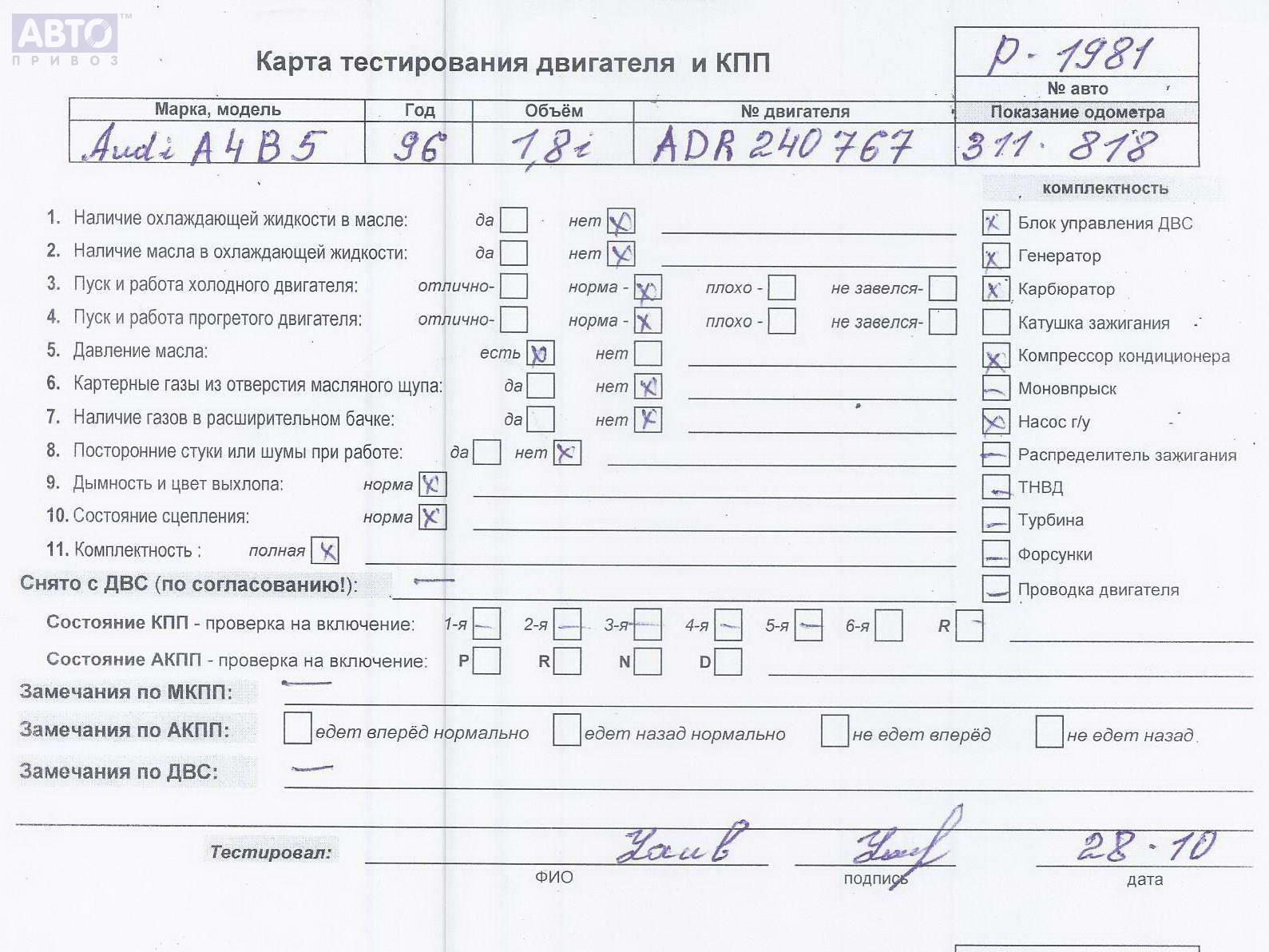 | Марка / Модель / Год: | Audi A4 B5 (1994-2001) 1996 |
