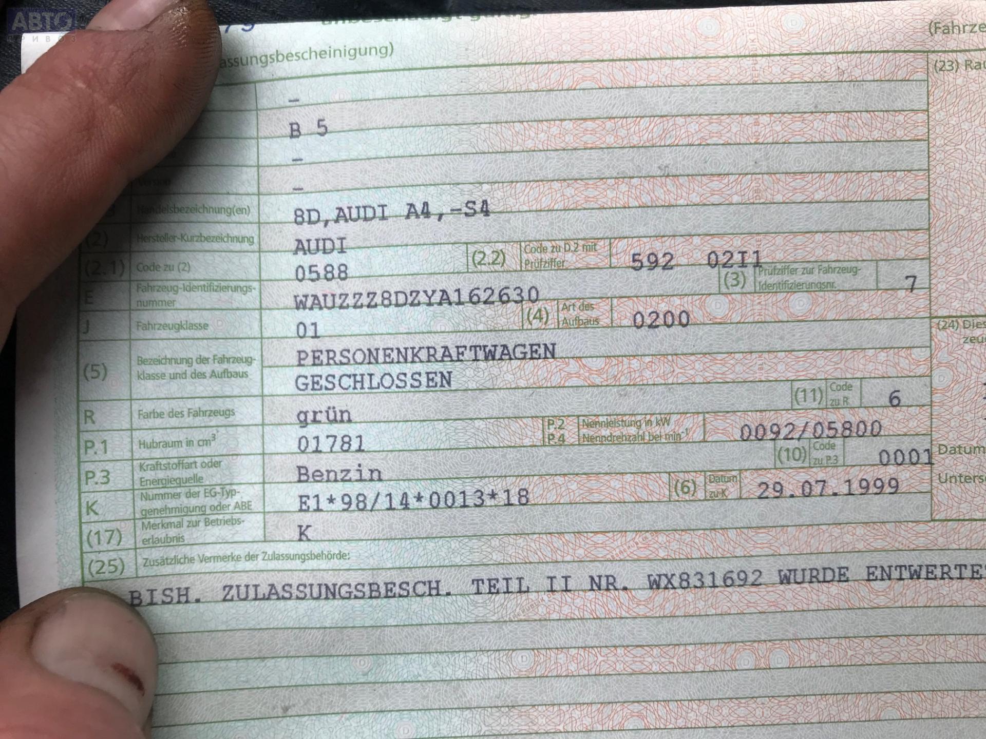 | Марка / Модель / Год: | Audi A4 B5 (1994-2001) 1999 |