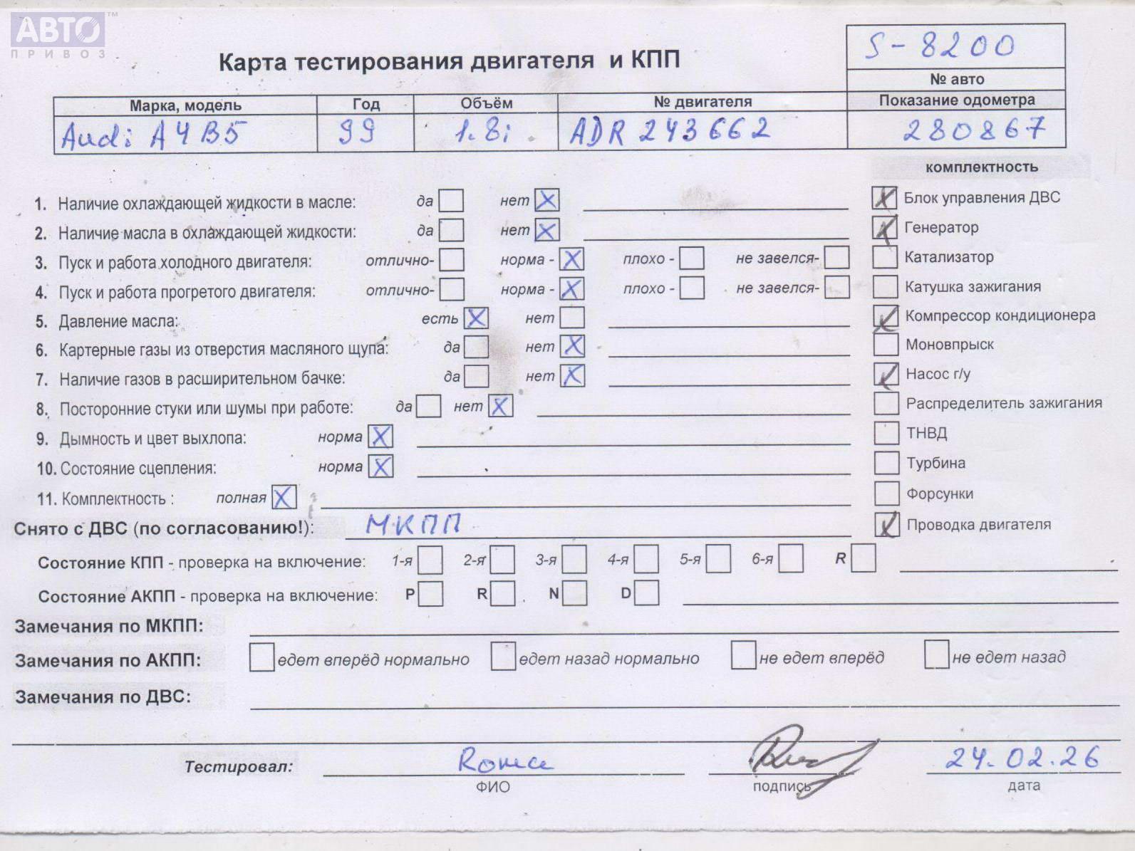 | Автомобиль / VIN: | S8200 WAUZZZ8DZXA287348 |