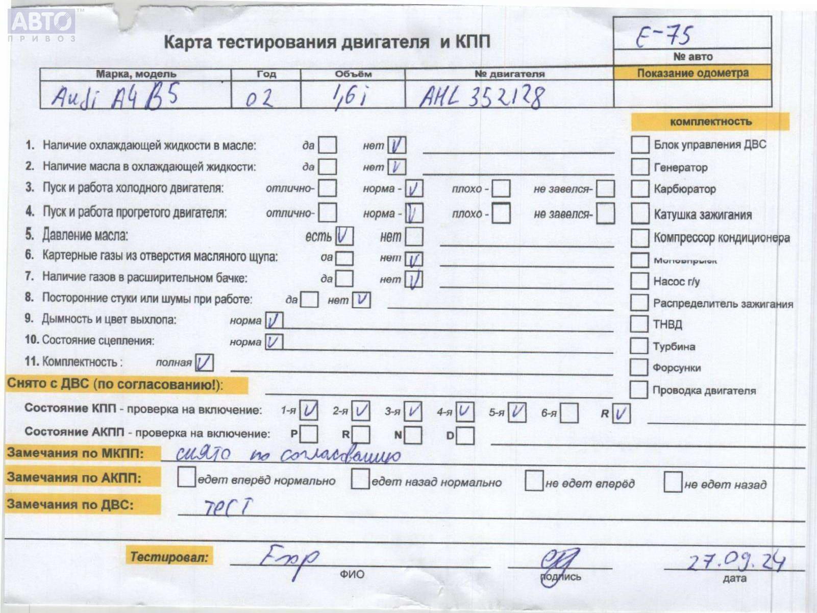 | Автомобиль / VIN: | E0075 WAUZZZ8DZXA213504 |