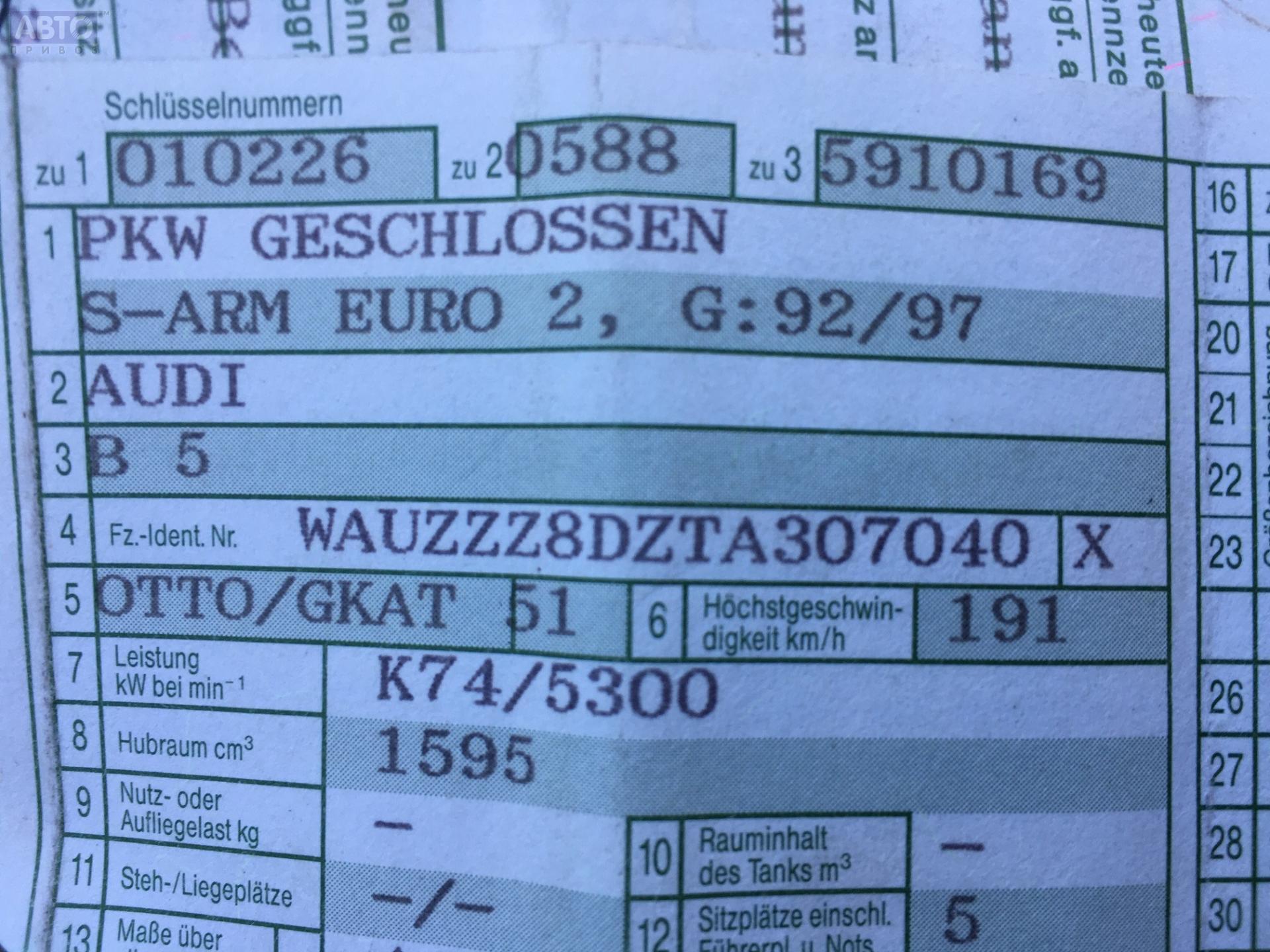 | Марка / Модель / Год: | Audi A4 B5 (1994-2001) 1996 |
