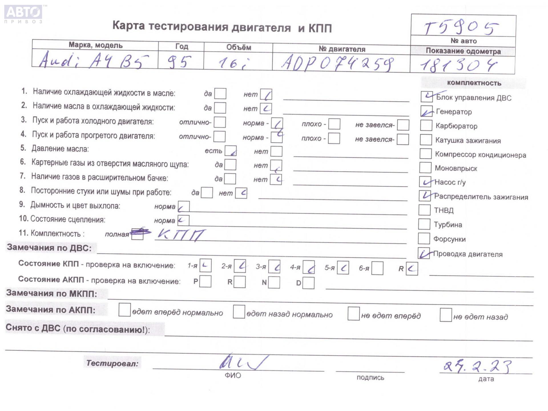 | Марка / Модель / Год: | Audi A4 B5 (1994-2001) 1995 |