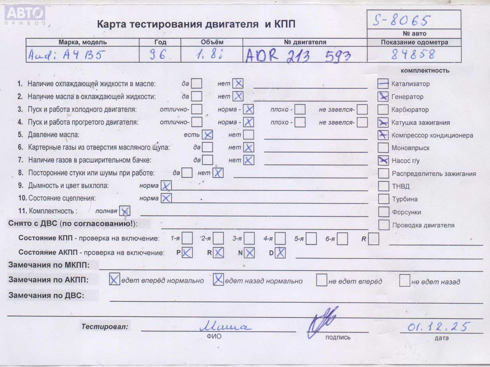 | Марка / Модель / Год: | Audi A4 B5 (1994-2001) 1996 |