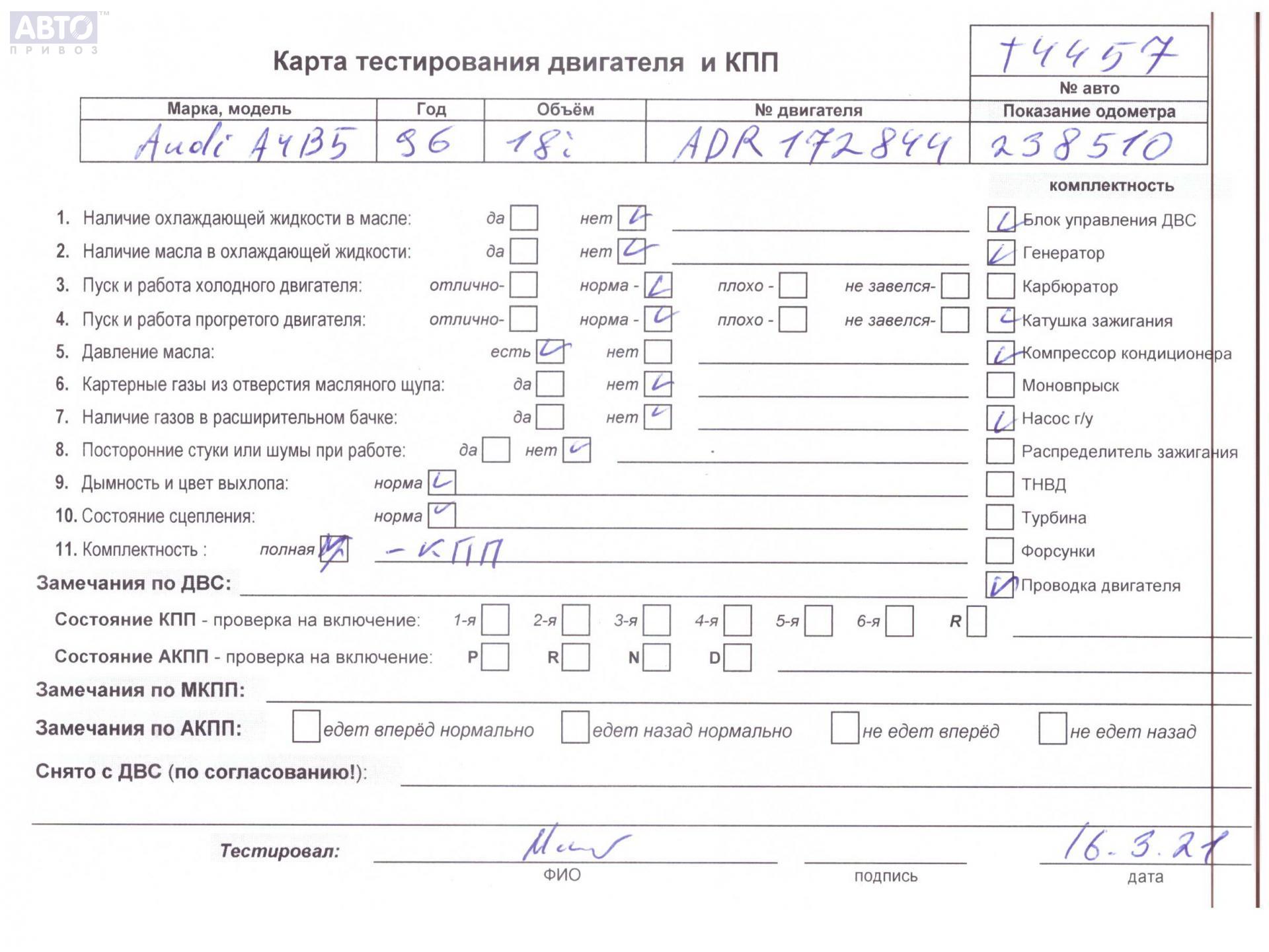 | Автомобиль / VIN: | T4457 WAUZZZ8DZTA322958 |