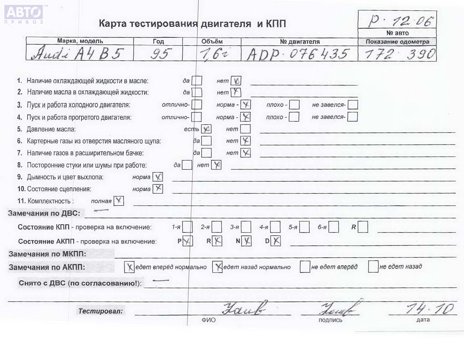 | Марка / Модель / Год: | Audi A4 B5 (1994-2001) 1995 |