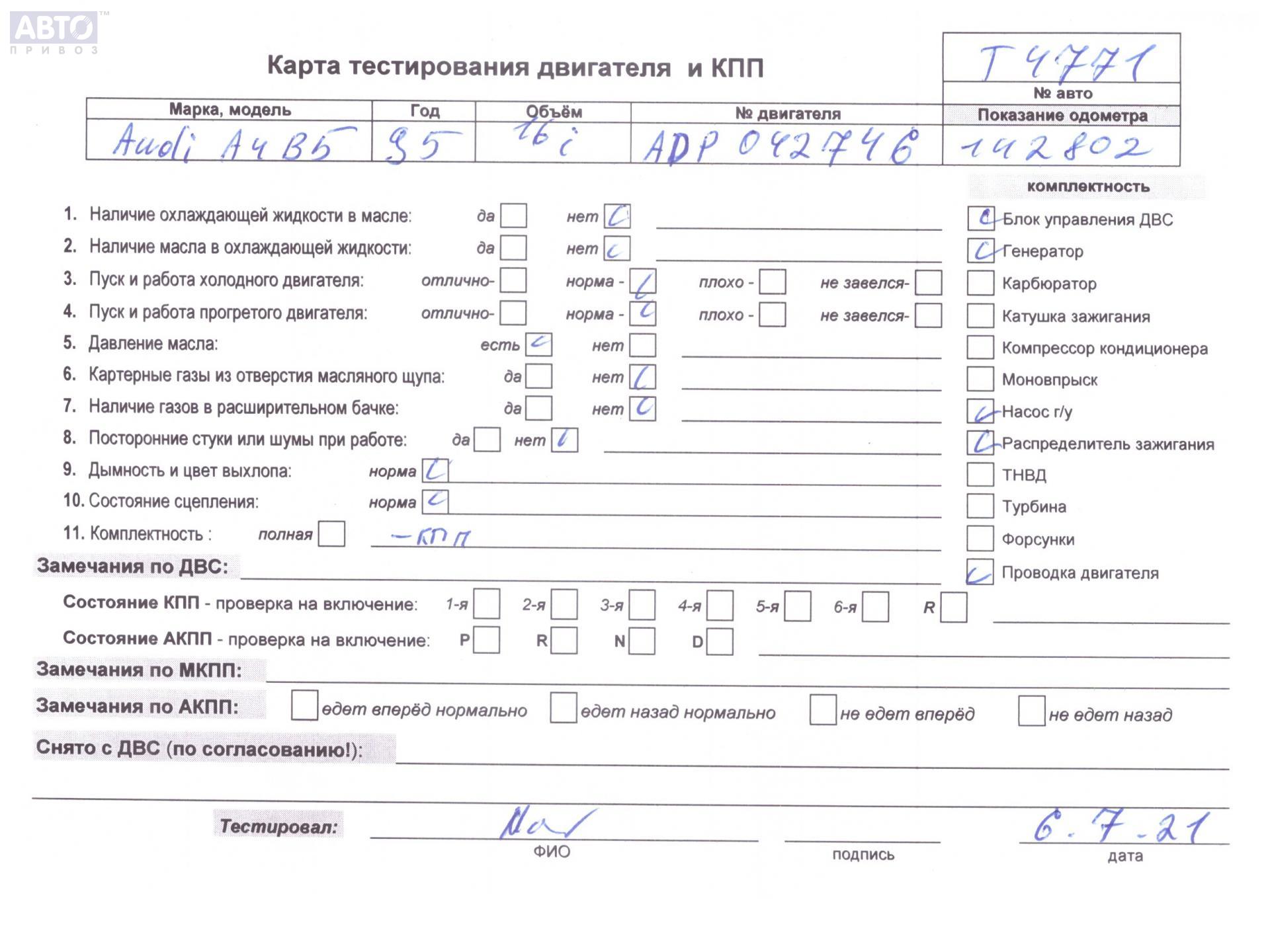 | Автомобиль / VIN: | T4771 WAUZZZ8DZSA121542 |
