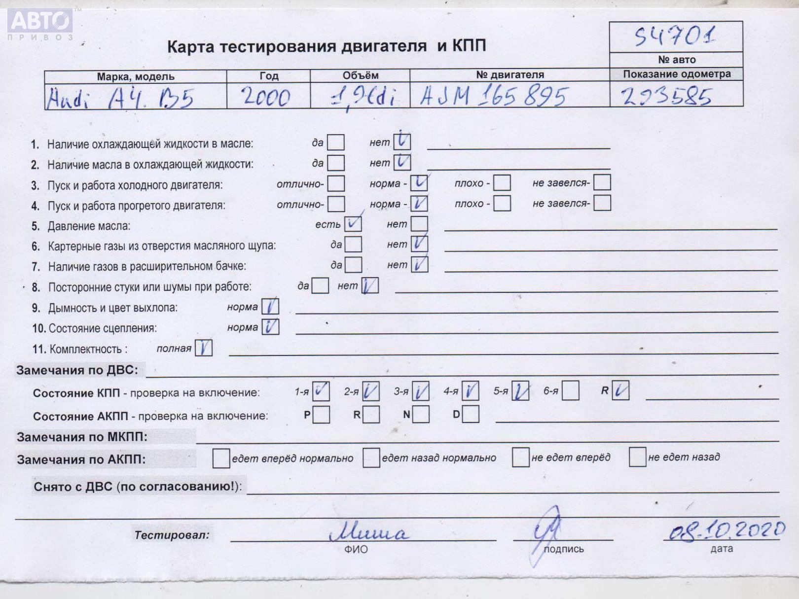 | Марка / Модель / Год: | Audi A4 B5 (1994-2001) 2000 |