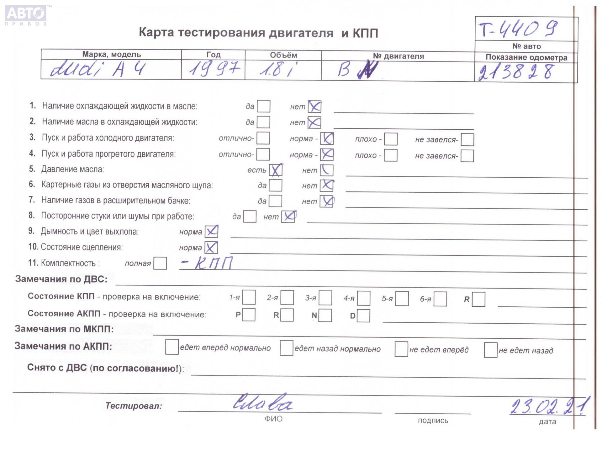 | Марка / Модель / Год: | Audi A4 B5 (1994-2001) 1995 |