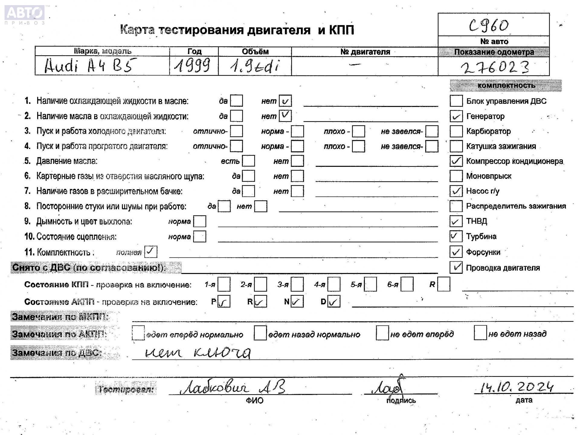 | Марка / Модель / Год: | Audi A4 B5 (1994-2001) 1999 |