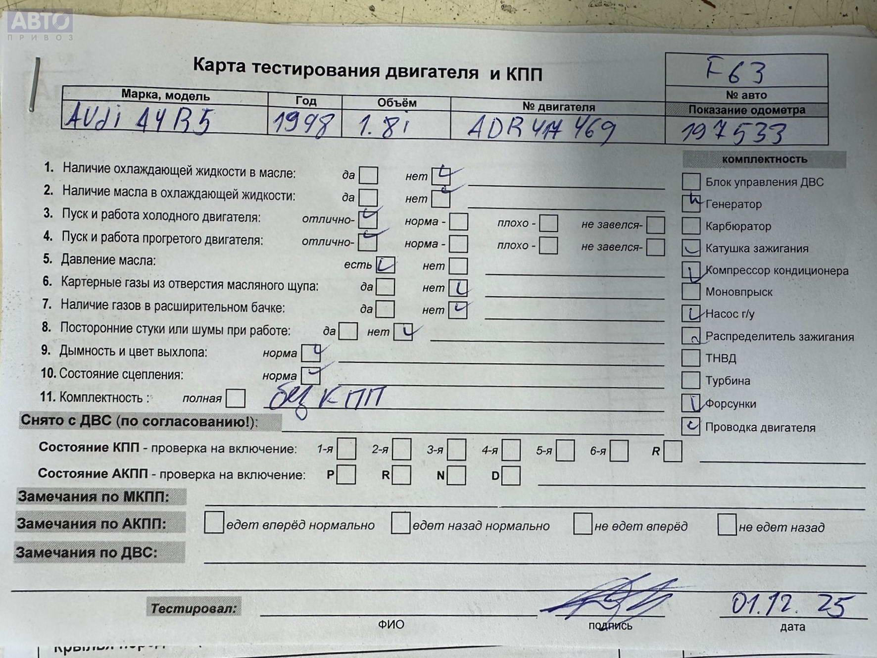 | Марка / Модель / Год: | Audi A4 B5 (1994-2001) 1998 |