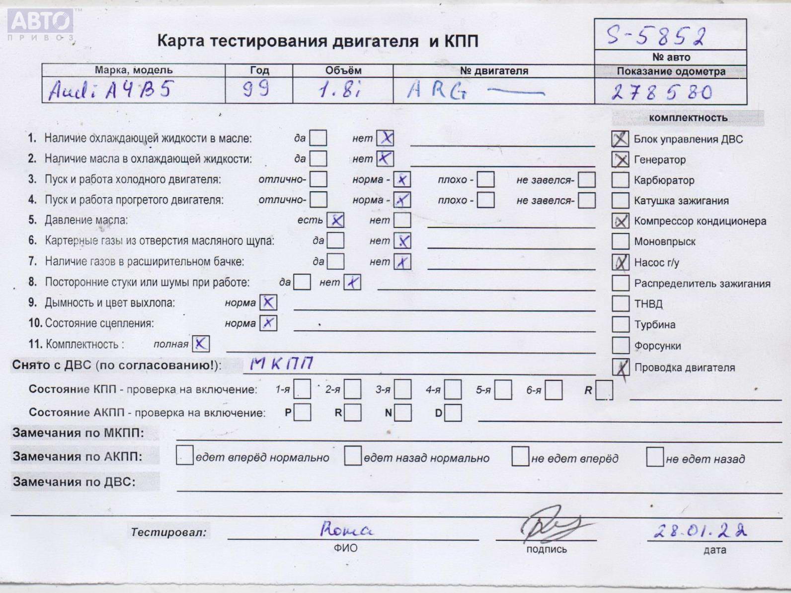 | Марка / Модель / Год: | Audi A4 B5 (1994-2001) 1999 |