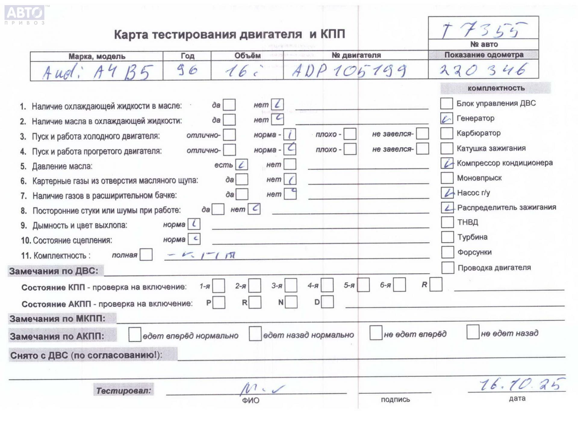 | Автомобиль / VIN: | T7355 WAUZZZ8DZTA245971 |