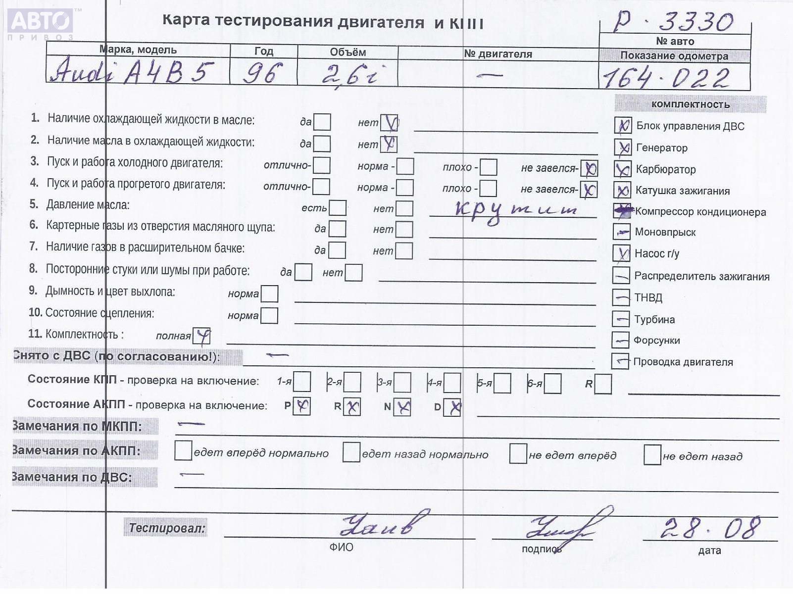 | Марка / Модель / Год: | Audi A4 B5 (1994-2001) 1996 |