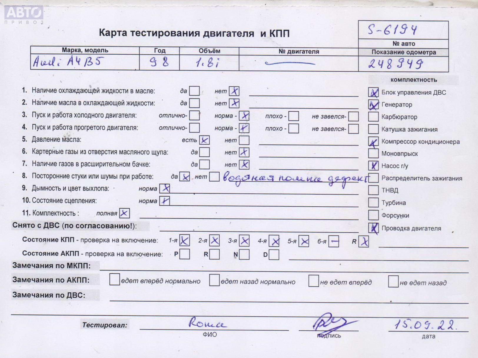 | Марка / Модель / Год: | Audi A4 B5 (1994-2001) 1998 |
