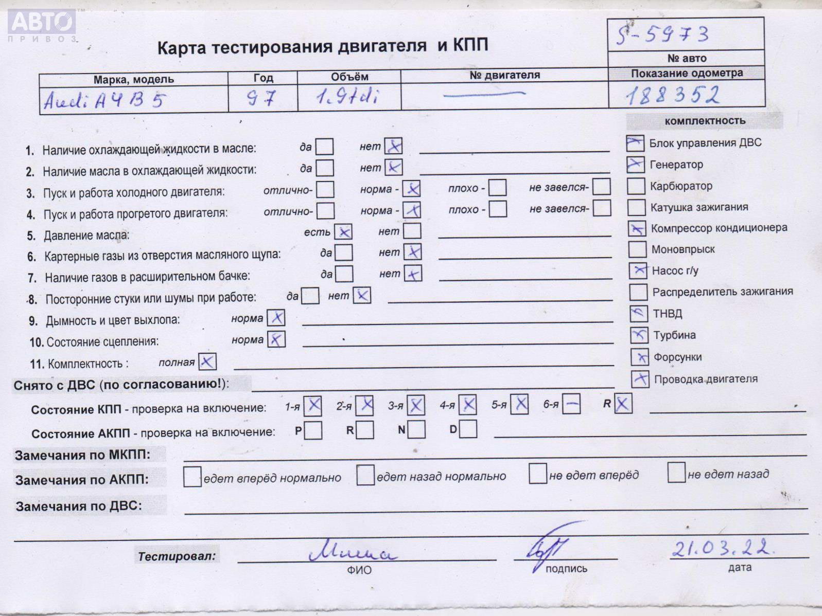 | Марка / Модель / Год: | Audi A4 B5 (1994-2001) 1997 |