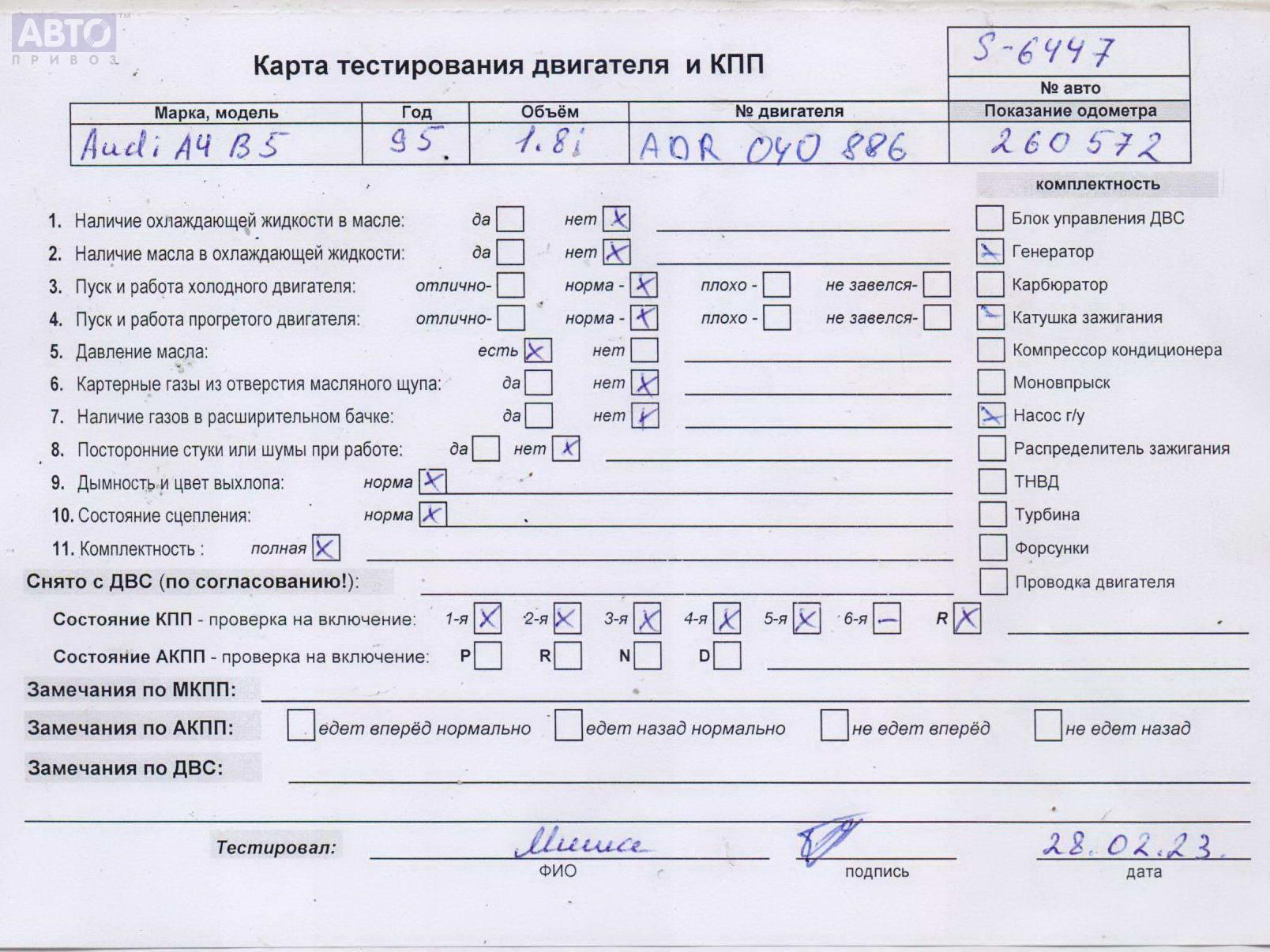 | Марка / Модель / Год: | Audi A4 B5 (1994-2001) 1995 |