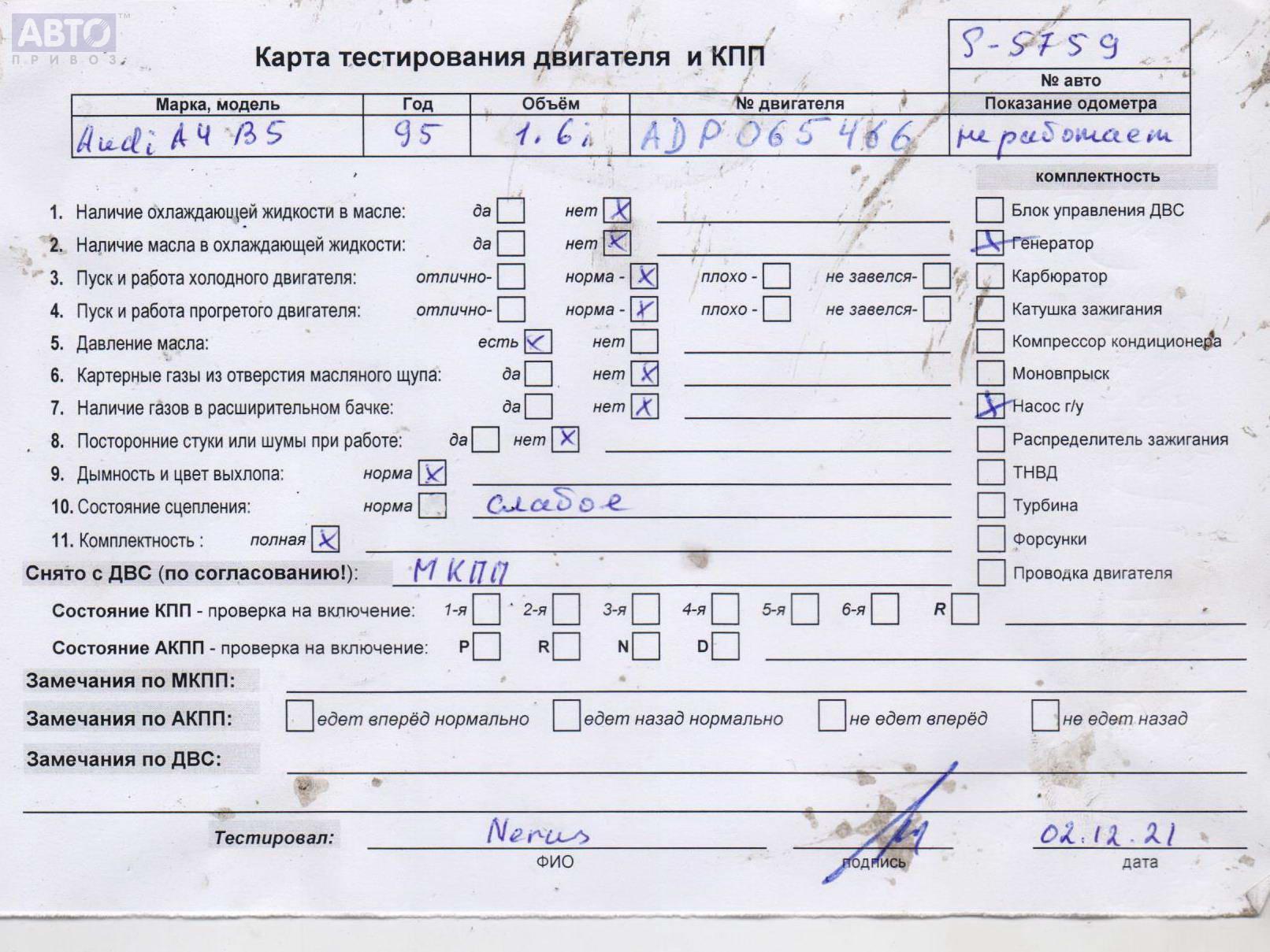 | Марка / Модель / Год: | Audi A4 B5 (1994-2001) 1995 |