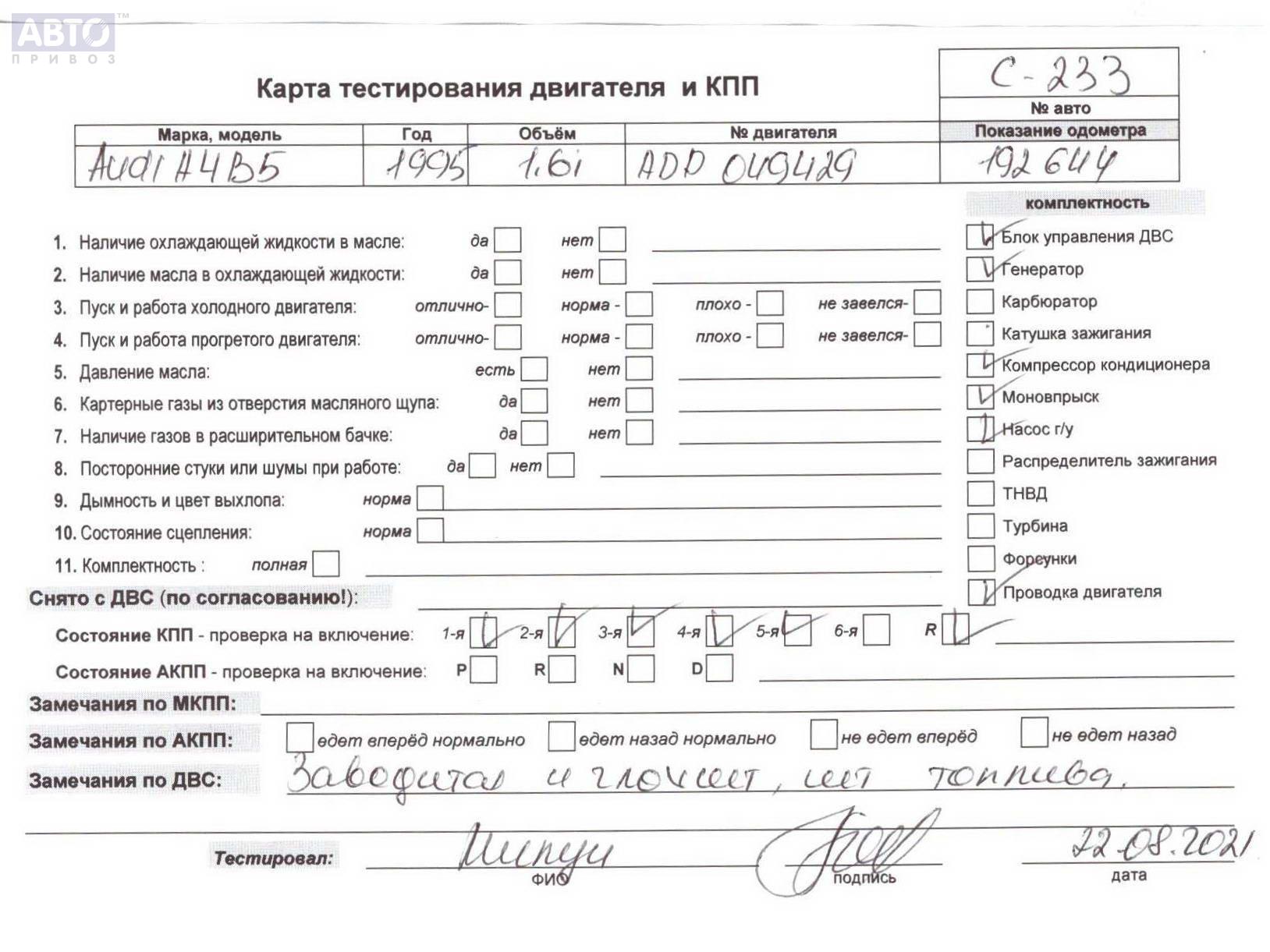 | Марка / Модель / Год: | Audi A4 B5 (1994-2001) 1995 |