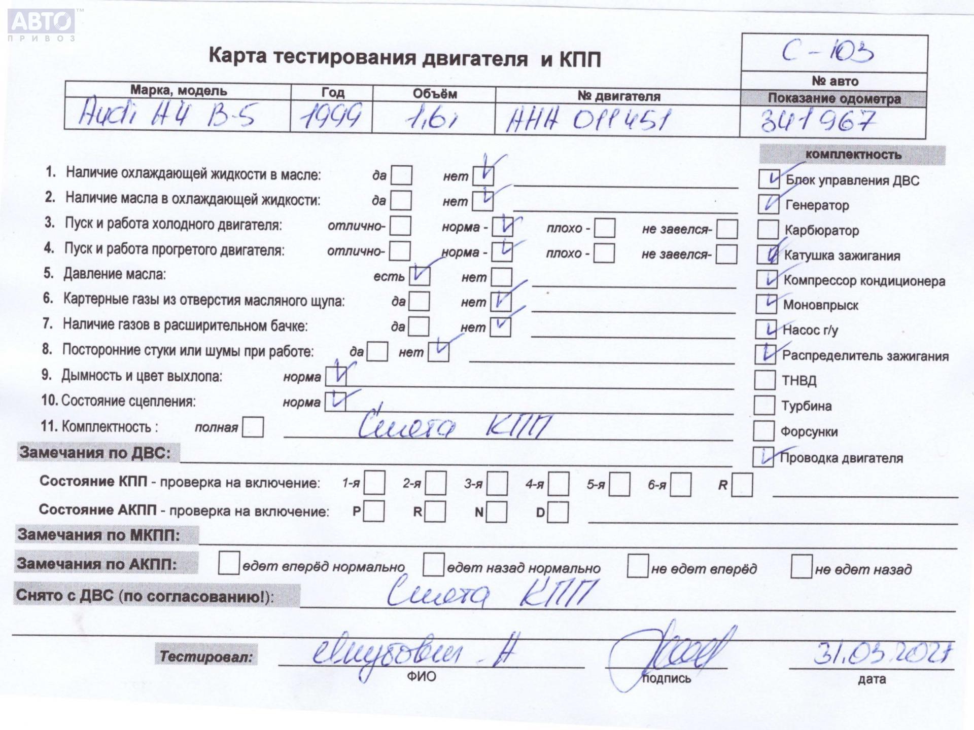 | Марка / Модель / Год: | Audi A4 B5 (1994-2001) 1999 |