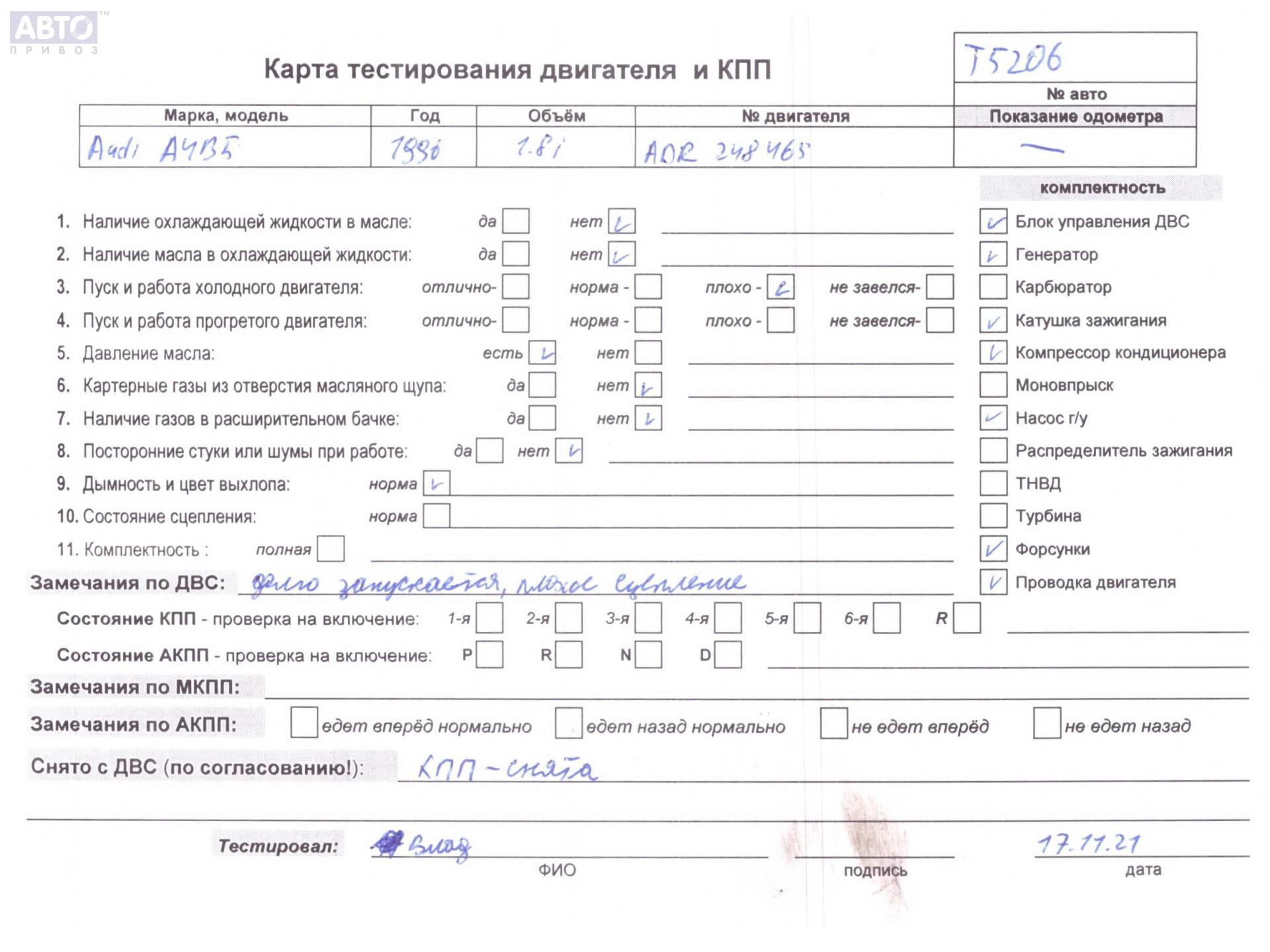 | Марка / Модель / Год: | Audi A4 B5 (1994-2001) 1997 |
