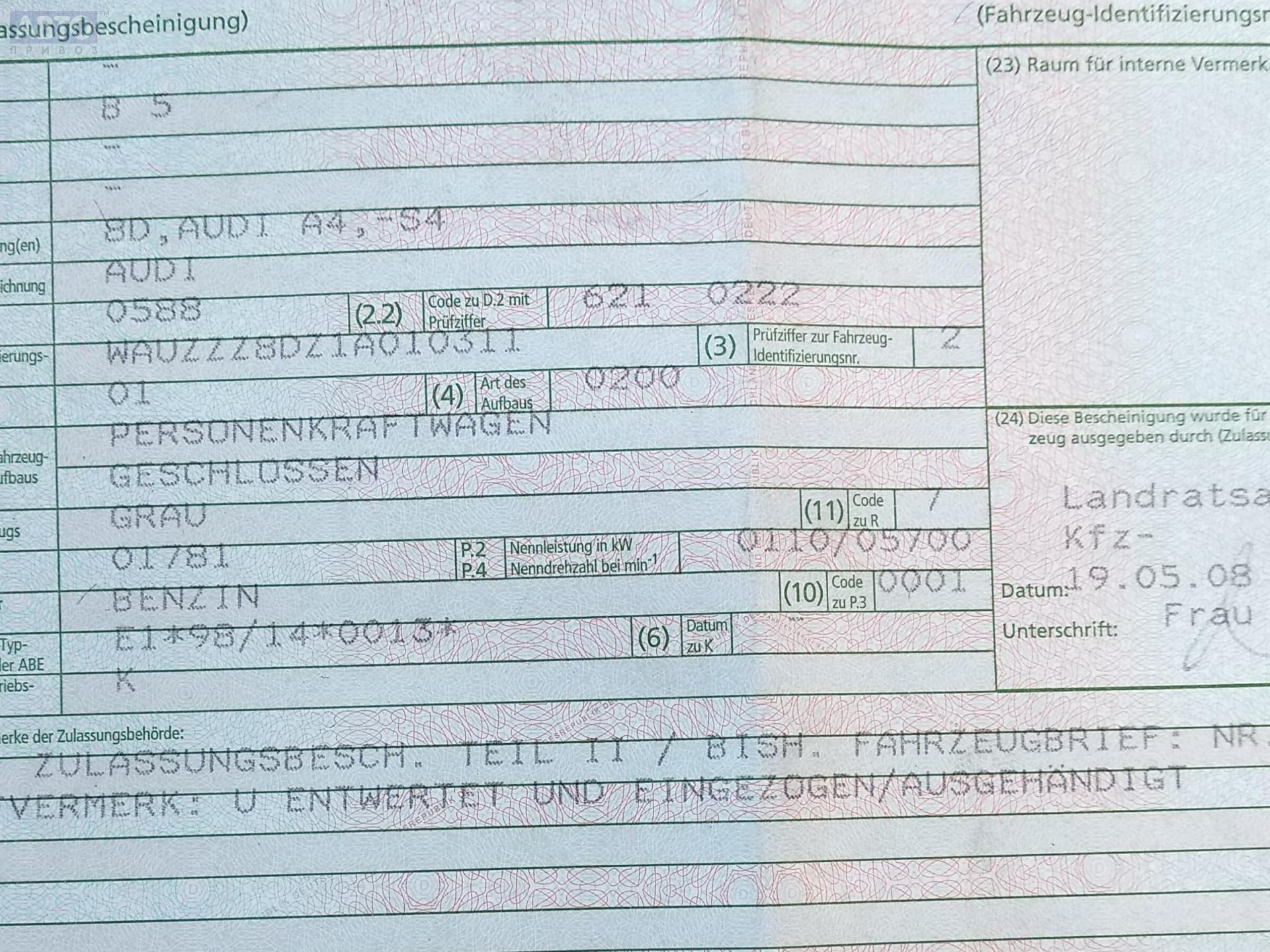 | Марка / Модель / Год: | Audi A4 B5 (1994-2001) 2000 |