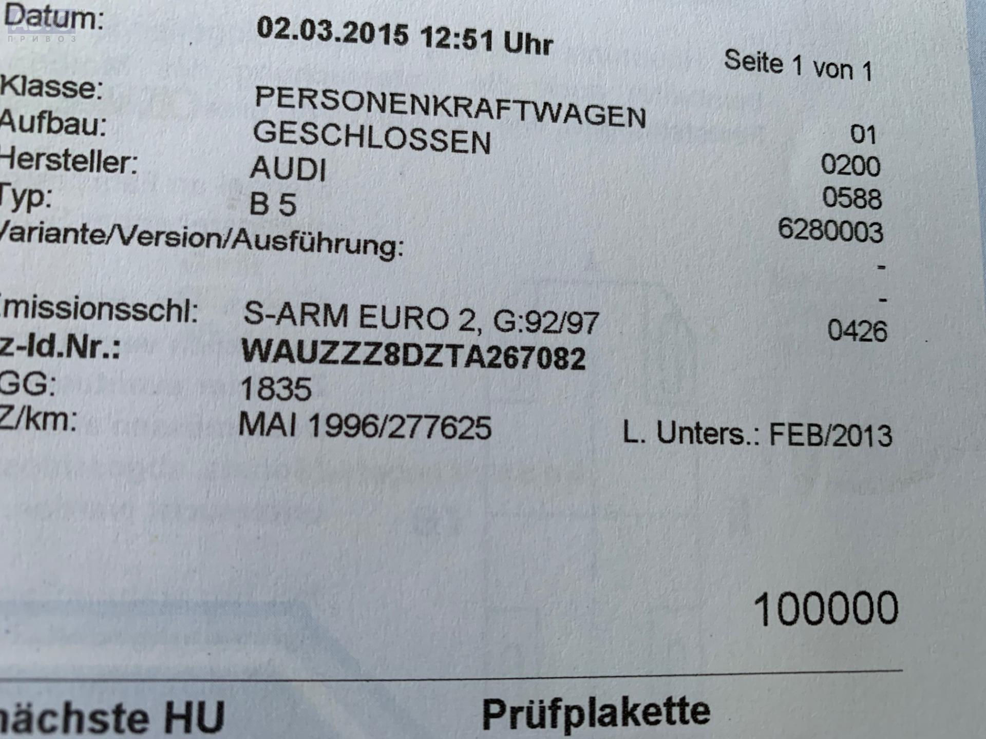| Марка / Модель / Год: | Audi A4 B5 (1994-2001) 1996 |