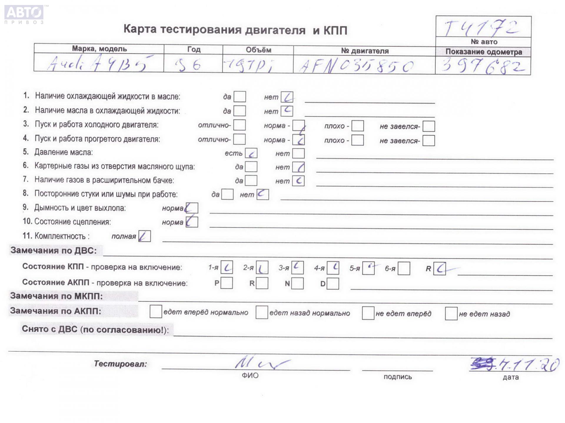 | Автомобиль / VIN: | T4172 WAUZZZ8DZTA267082 |
