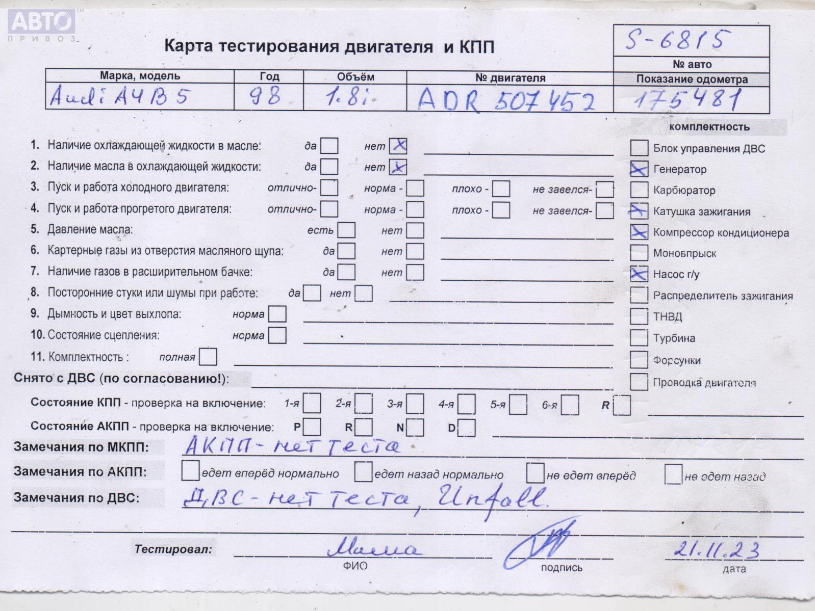 | Марка / Модель / Год: | Audi A4 B5 (1994-2001) 1999 |