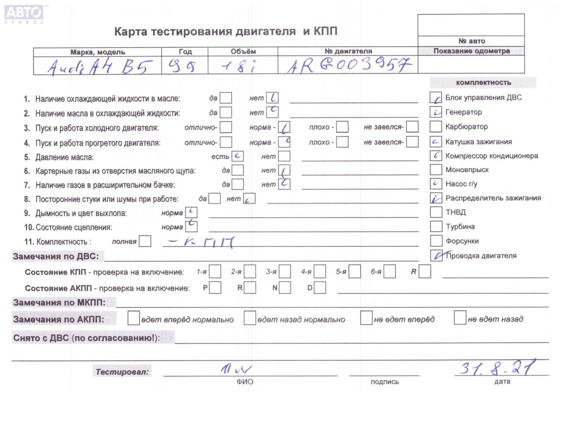 | Марка / Модель / Год: | Audi A4 B5 (1994-2001) 1999 |