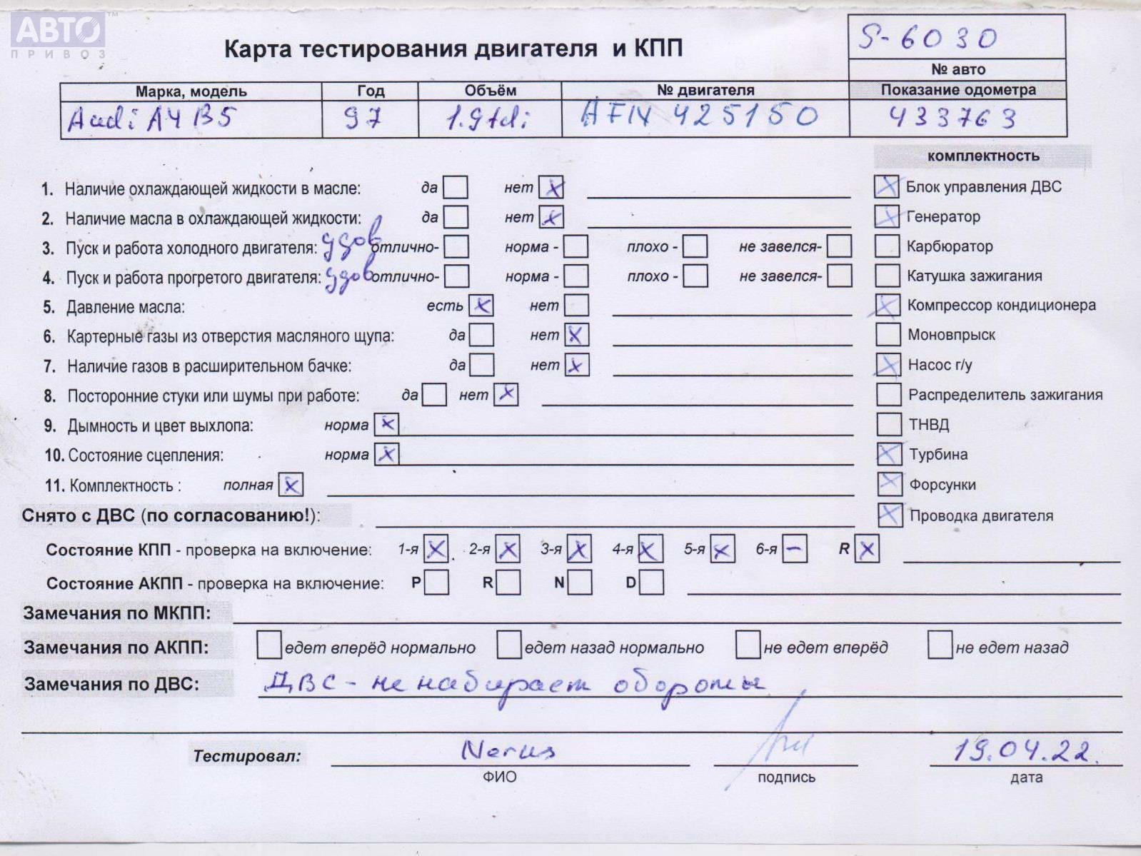 | Марка / Модель / Год: | Audi A4 B5 (1994-2001) 1997 |
