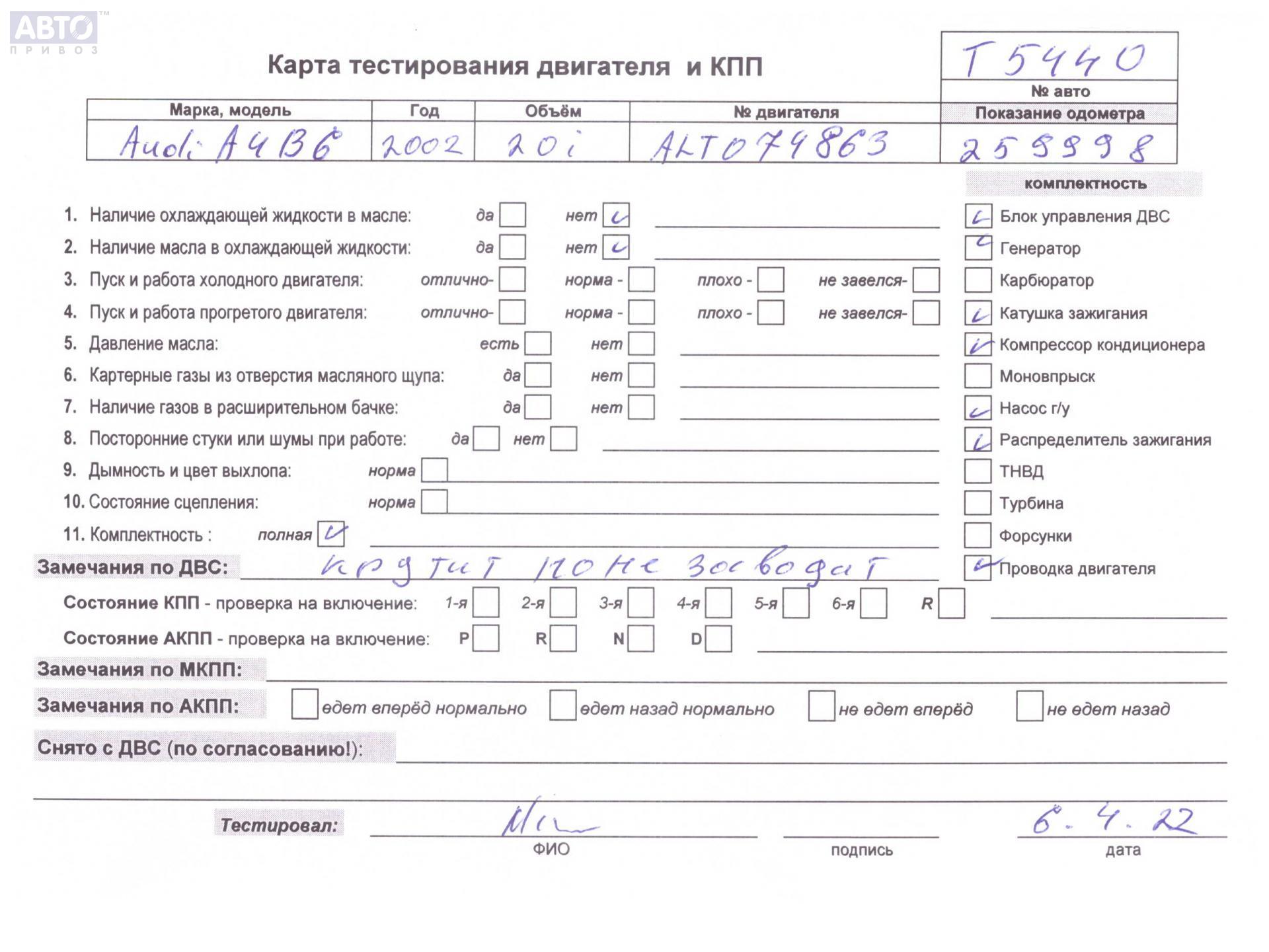 | Автомобиль / VIN: | T5440 WAUZZZ8E62A235417 |