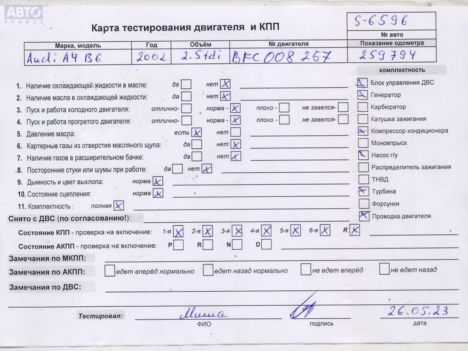 | Марка / Модель / Год: | Audi A4 B6 (2001-2004) 2002 |