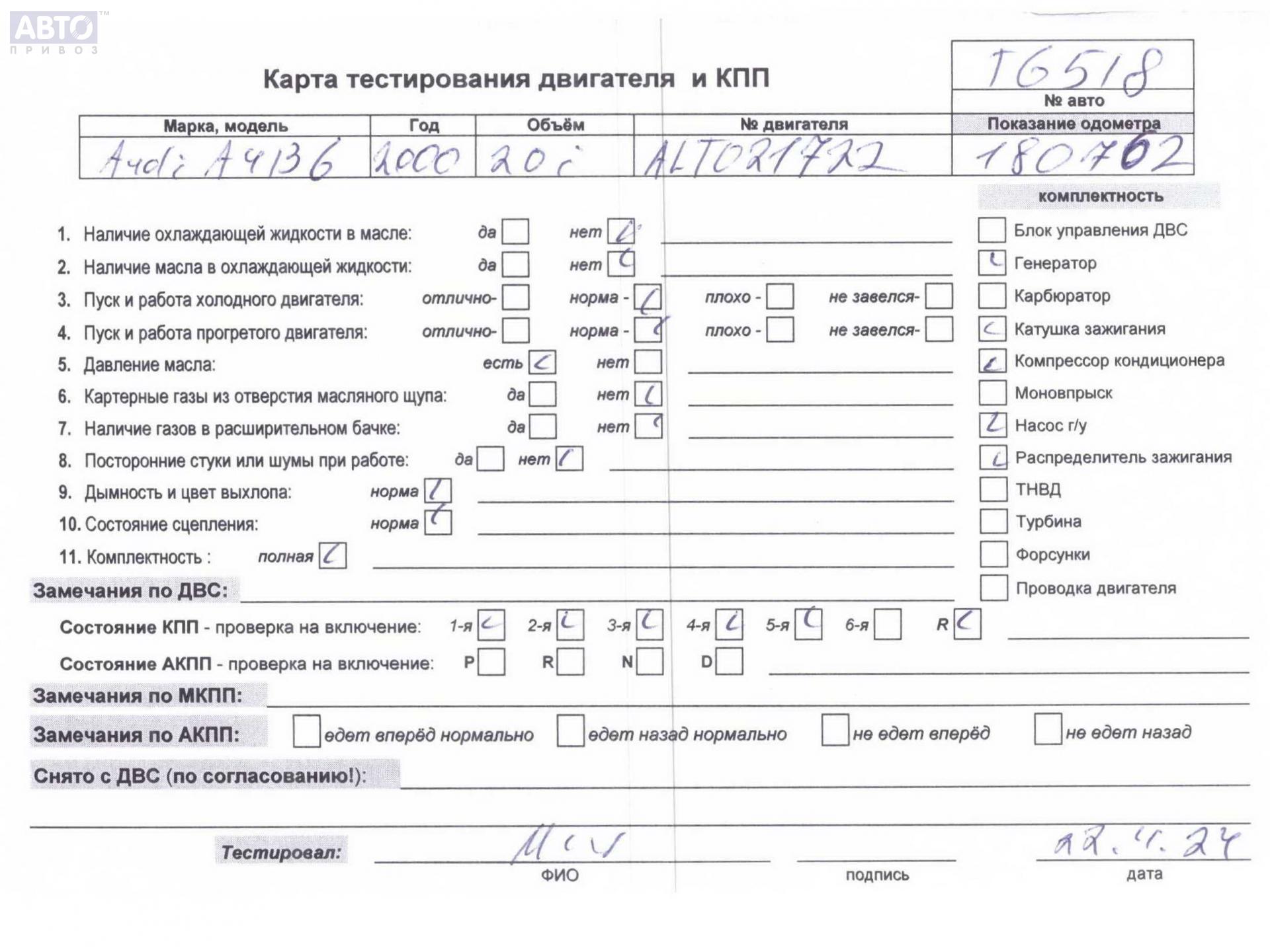| Автомобиль / VIN: | T6518 WAUZZZ8EZ1A051954 |