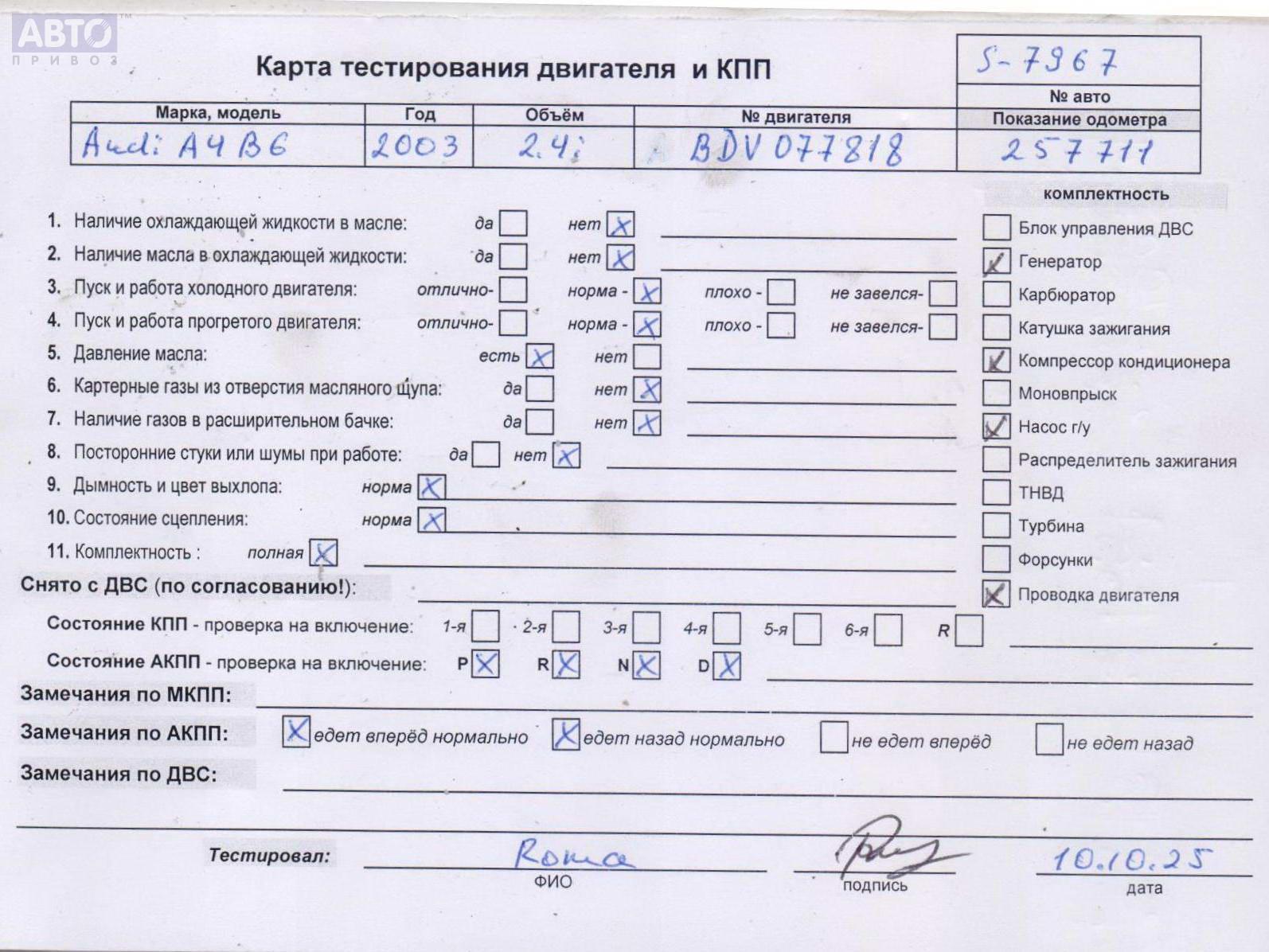 | Автомобиль / VIN: | S7967 WAUZZZ8E44A106983 |