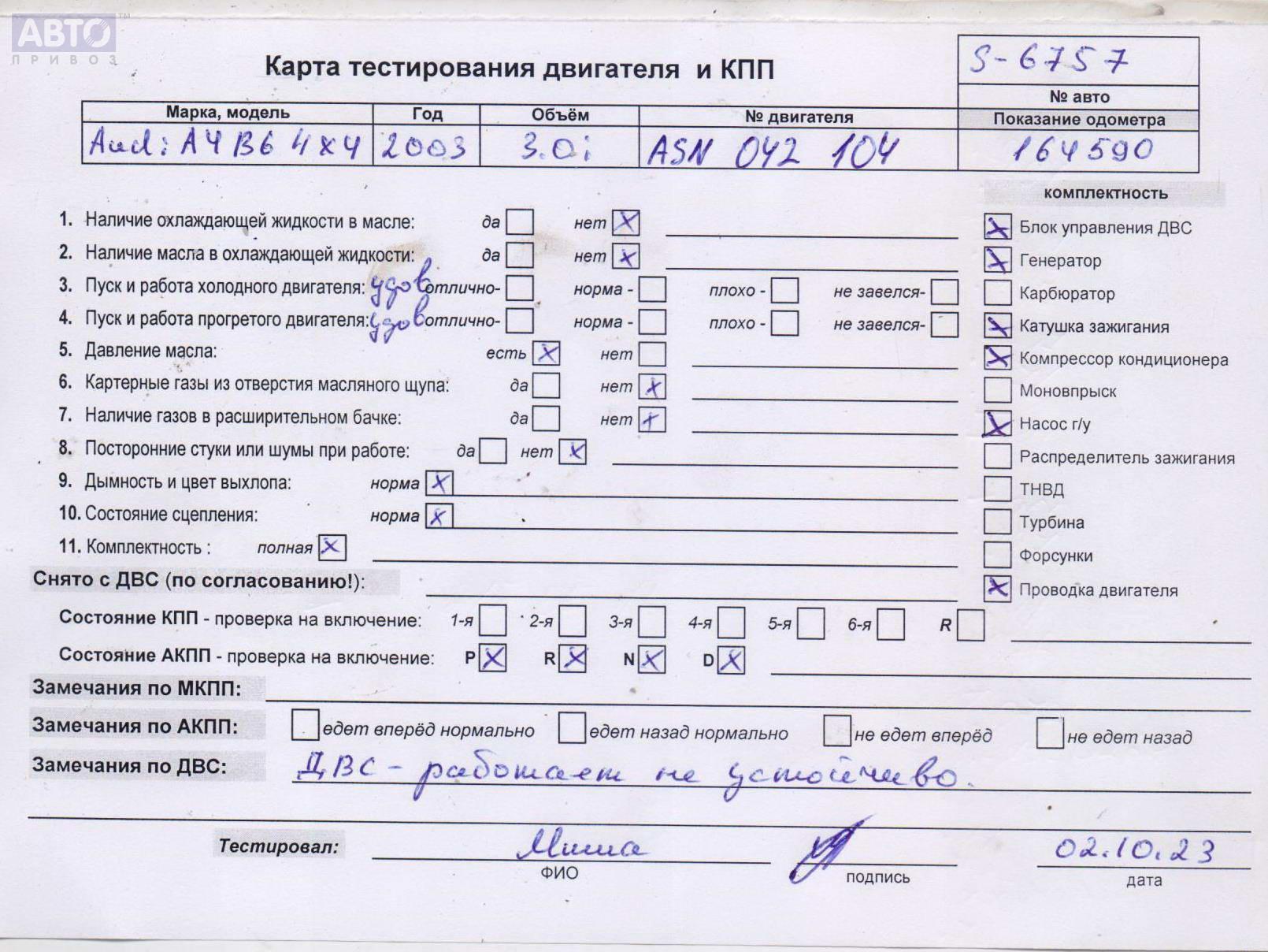 | Автомобиль / VIN: | S6757 WAUZZZ8E54A036930 |